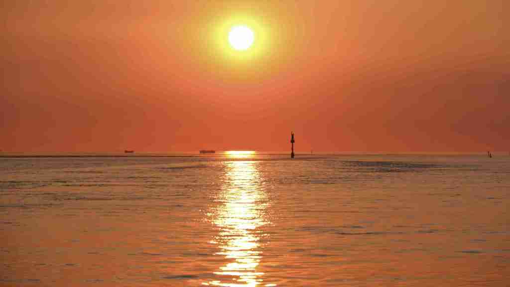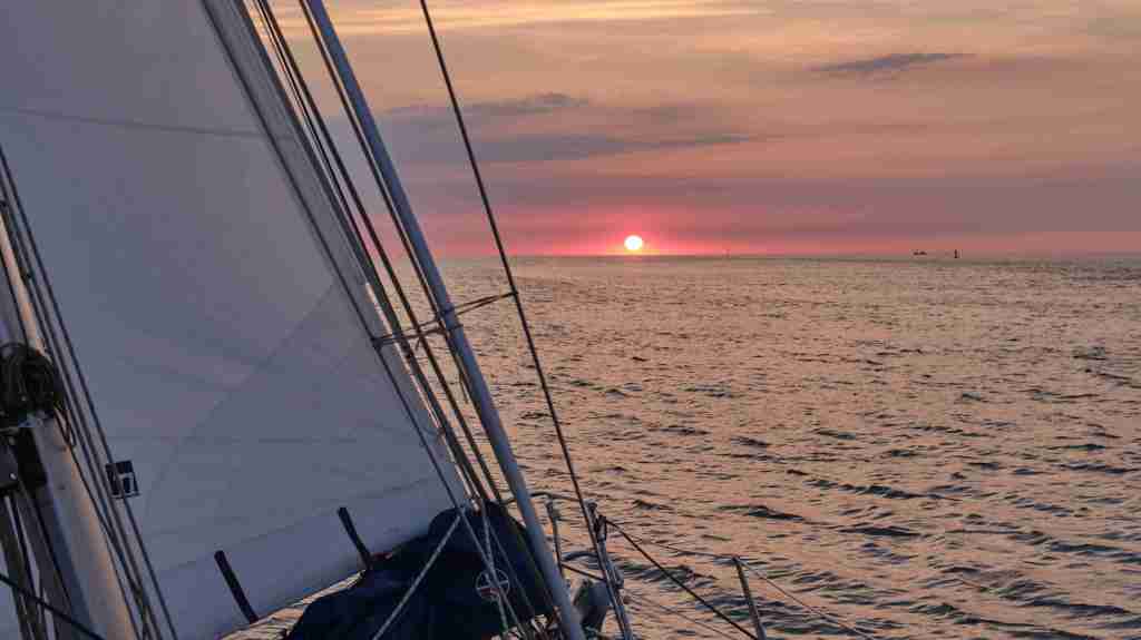 Wir passieren Cuxhaven, den Hauptsitz des TransOcean, dieses Mal ohne einen Besuch, dann die berühmte Kugelbake vor traumhaftem Sonnenuntergang und dann die Außenelbe entlang vorbei an Neuwerk. Es wird dunkel, die Strömung spült uns in die Nordsee, der Wind flaut leider ab und in meiner ersten Nachtwache suche ich meinen Weg beim Fahrwasserwechsel am Scharhörnriff zwischen den vielen Frachtern und Fischern hindurch zur Tonne 1, um dort auf den langen Weg entlang der ostfriesischen Inseln nach Westen abzubiegen. Wir freuen uns an den leichten Winden, die mit 3 Bft. von Ost auf Südost drehen. Wir wechseln uns alle zwei Stunden ab, die Nacht bleibt ruhig und wir kommen nacheinander doch zu etwas Schlaf.