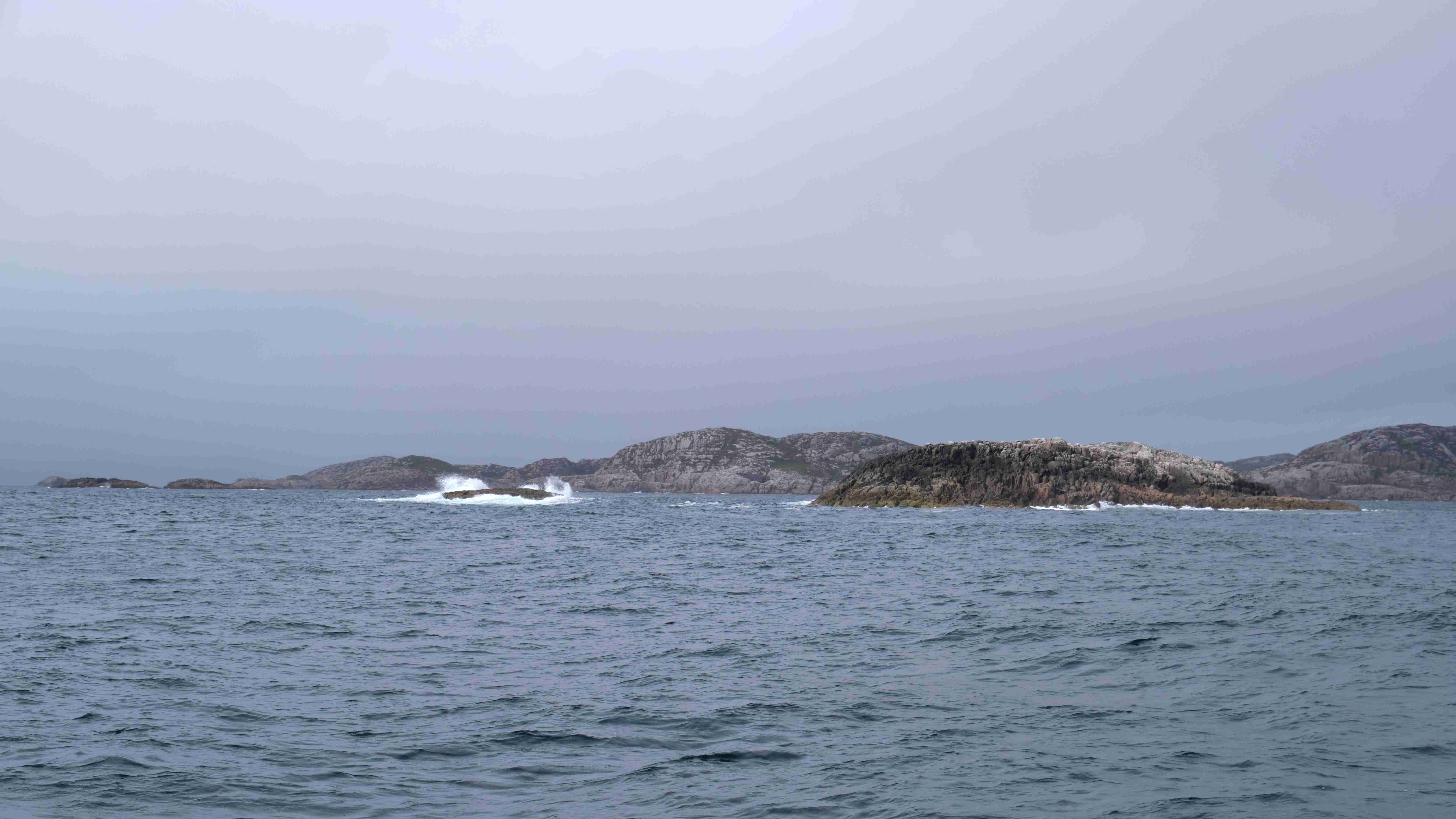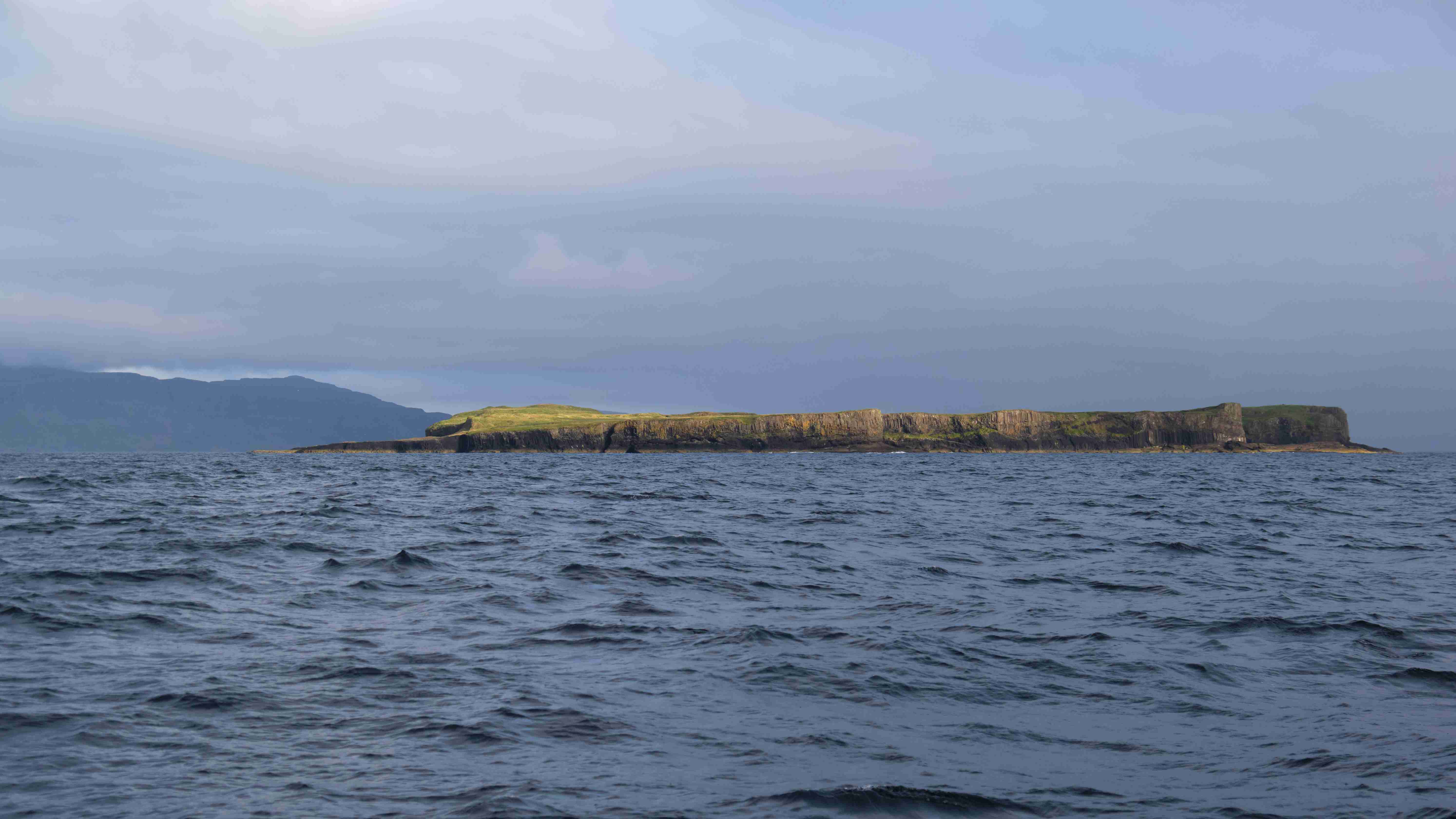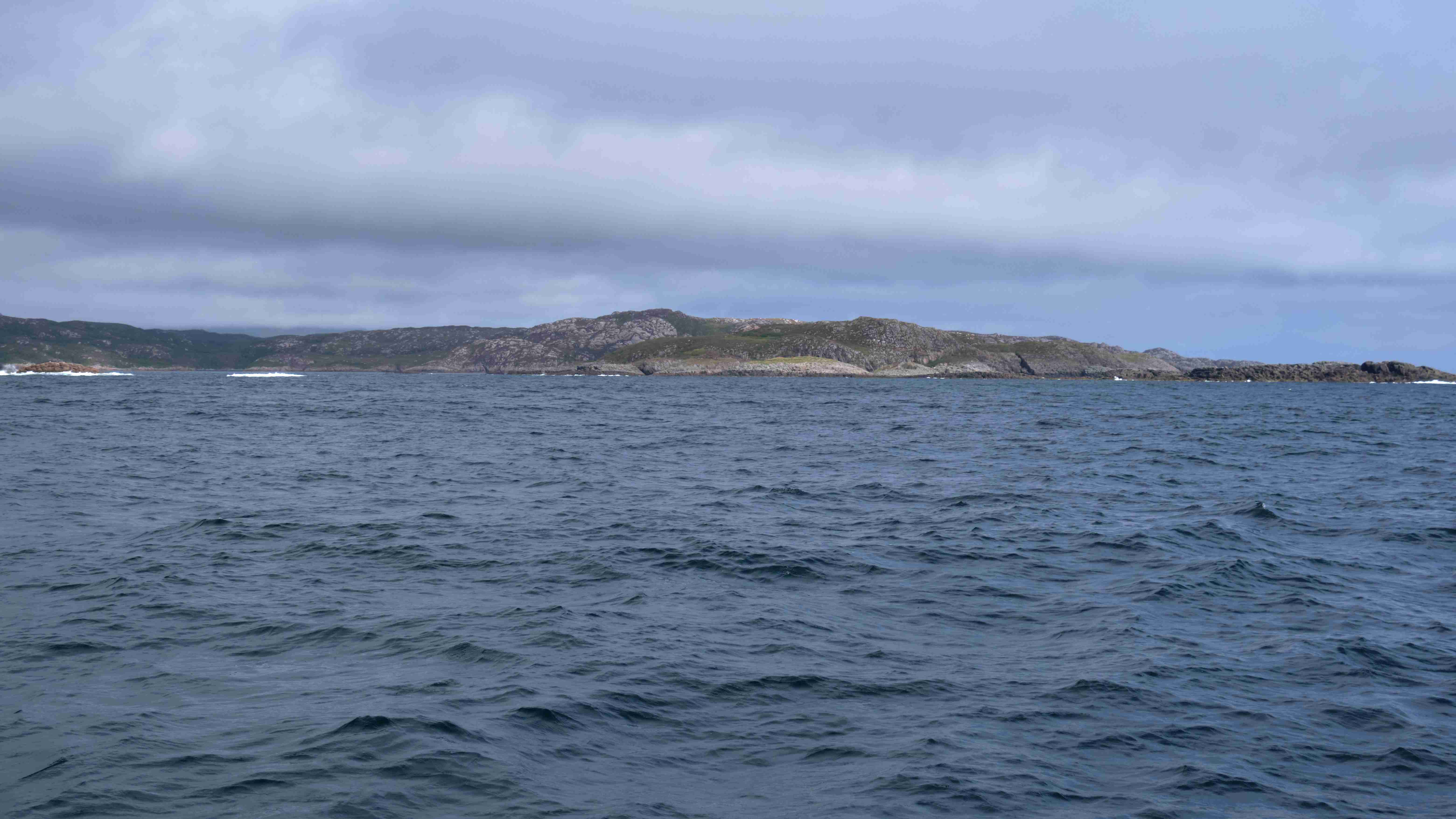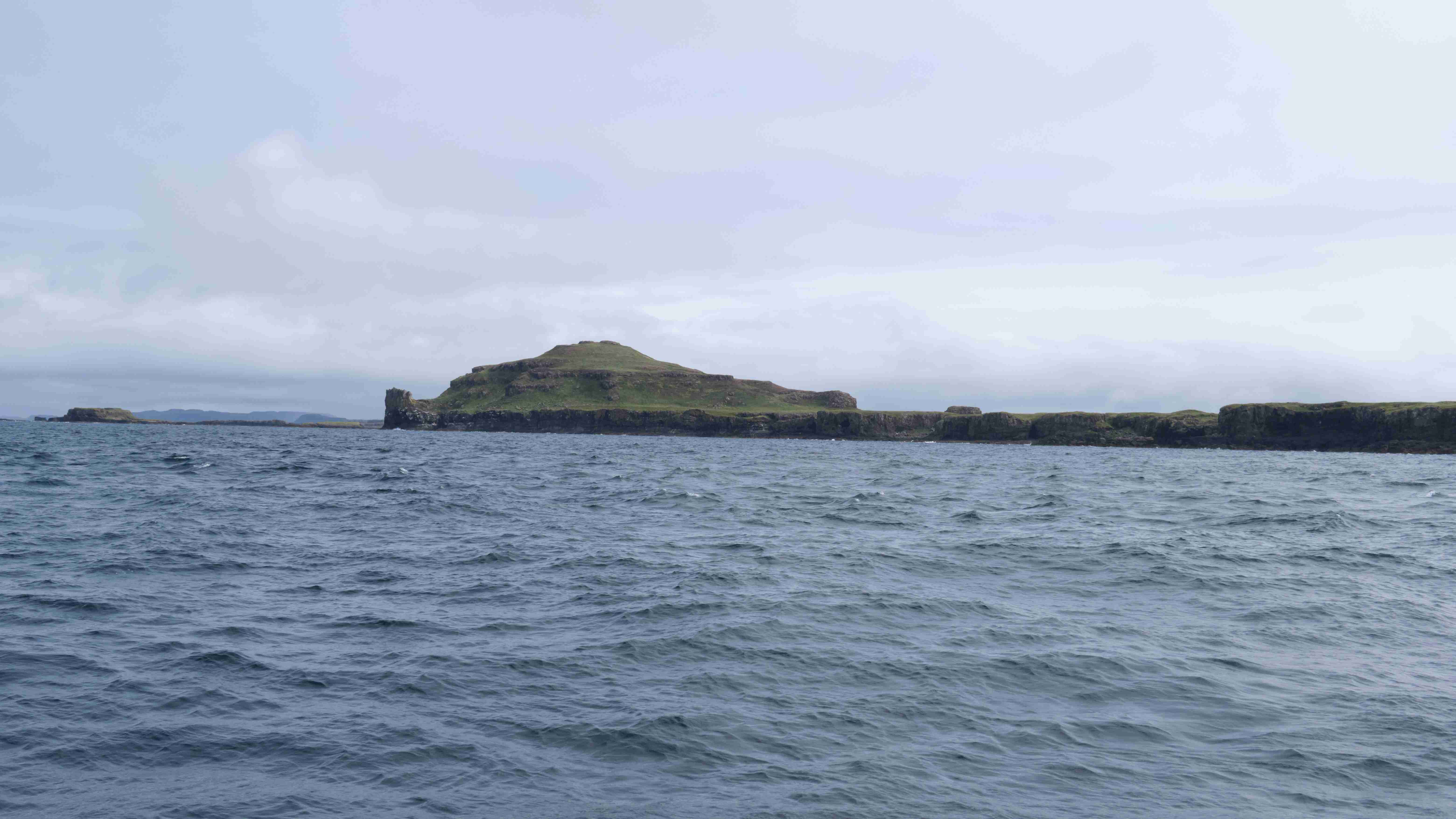 Uns wurde die kleine Insel Lunga als Vogelparadies empfohlen und wir nehmen uns diese Insel als Ziel vor. Leider müssen wir gegen den NW-Wind ankreuzen und kommen nicht schnell genug voran, um das Ziel vor dem Abend zu erreichen. So suchen wir uns die kleine Bucht Tinkers Hole als Zwischenziel aus. Wir erreichen die Insel Erraid auch und schlüpfen durch die sehr enge spannende Einfahrt an der Südostecke hinein in die kleine Passage zur Insel En Dubh, um dann leider festzustellen, dass der Abstand zwischen den Felswänden so eng ist, dass der Kreis zum Schwojen nicht ausreichen würde. Schweren Herzens treten wir den Rückzug an und müssen weitersegeln, obwohl ich keine Lust mehr habe, dieser Tag ist nicht mein Tag.