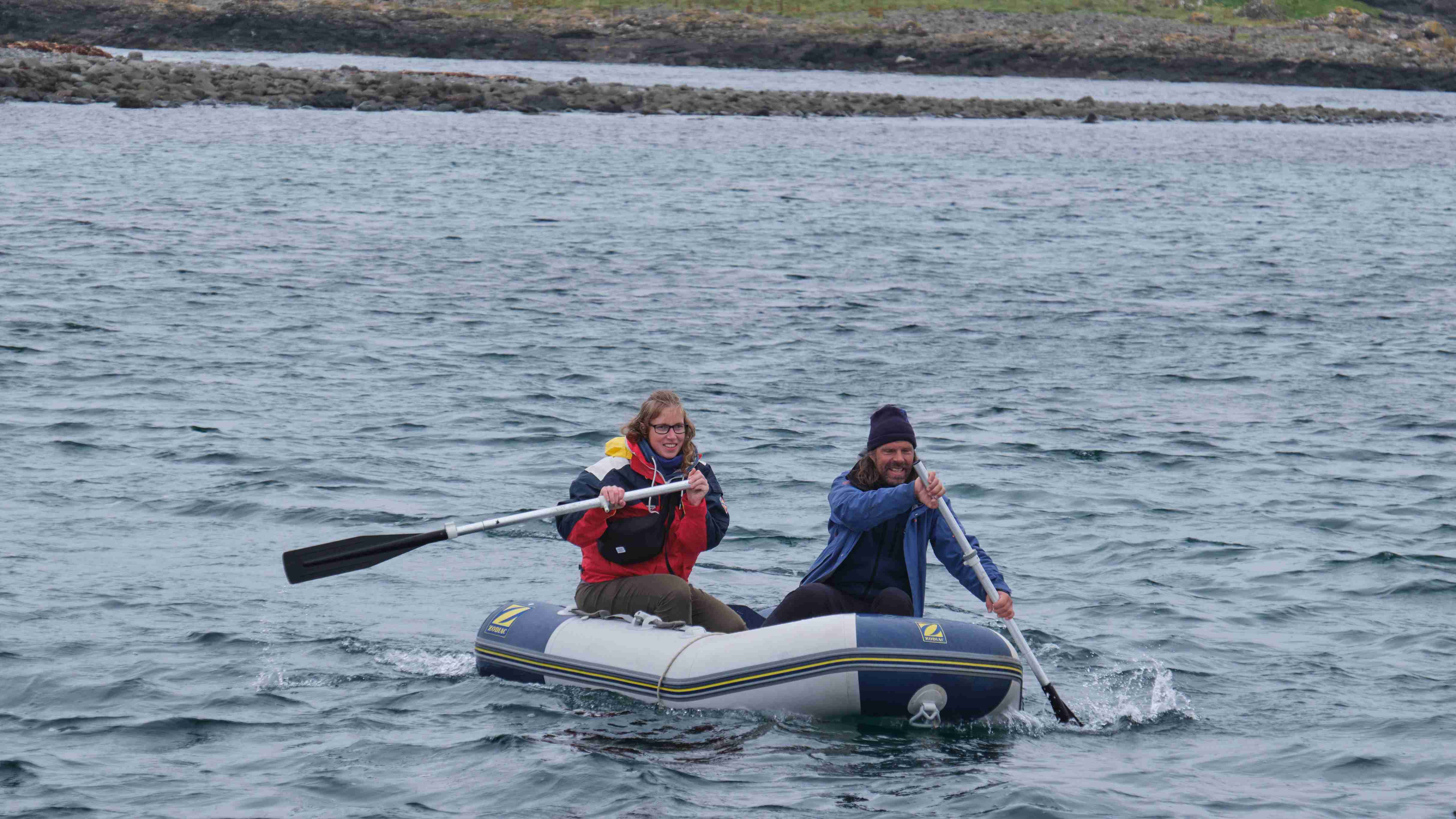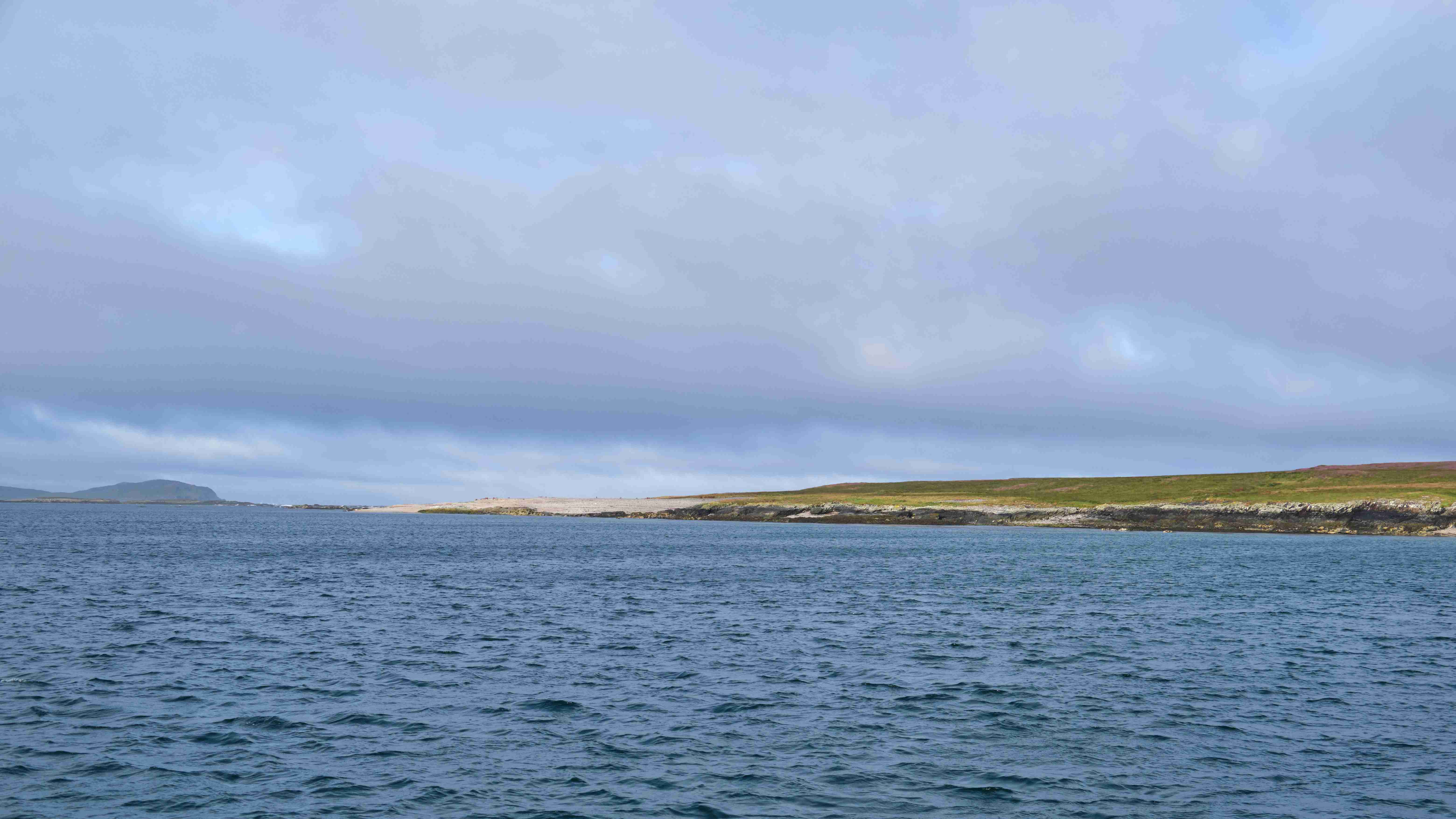 Tags darauf suchen wir uns die schmale Einfahrt an der Nordseite von Lunga und machen an einem Ponton fest, der für Touristenboote verankert ist, um die Vogelinsel zu erkunden. Sophia und Till rudern an Land. Ich bleibe lieber an Bord, denn der Wind und die Strömung sind kräftig. Wenn die beiden abtreiben, kann ich sie auf See auffischen. Leider ist die Brutzeit der Puffin (Lunde, Papageitaucher) vorbei und sie finden keine mehr auf der Insel. Unsere irischen Segelfreunde hatten davon geschwärmt und vom Treiben und dem Lärm der zahmen Vögel berichtet, die nur zur Brutzeit auf die Insel kommen, um dort direkt auf dem Boden zu brüten. Vielleicht kann ich sie im nächsten Jahr sehen, es gibt auch Kolonien z.B. auf den Orkneys oder in Norwegen.