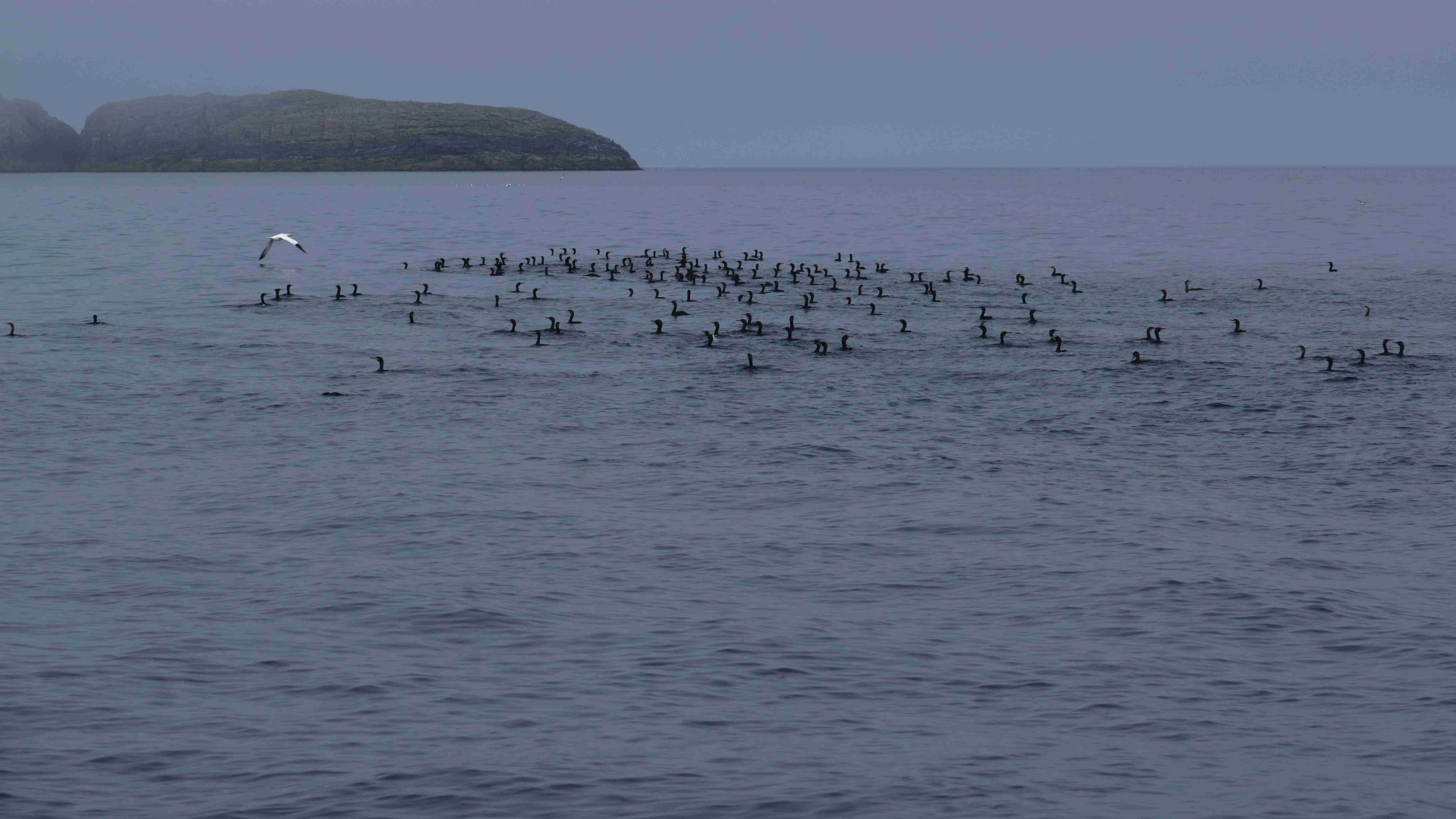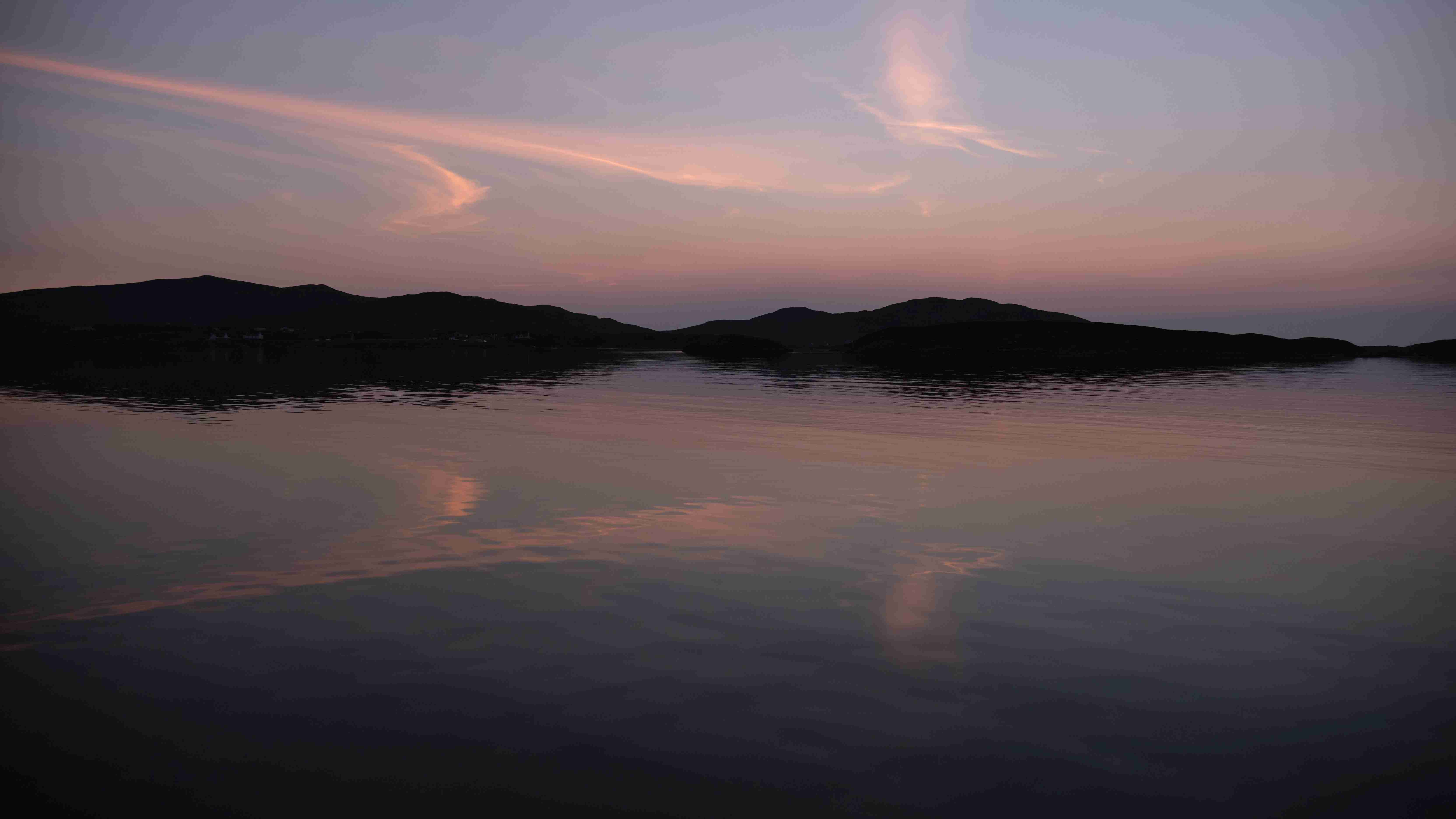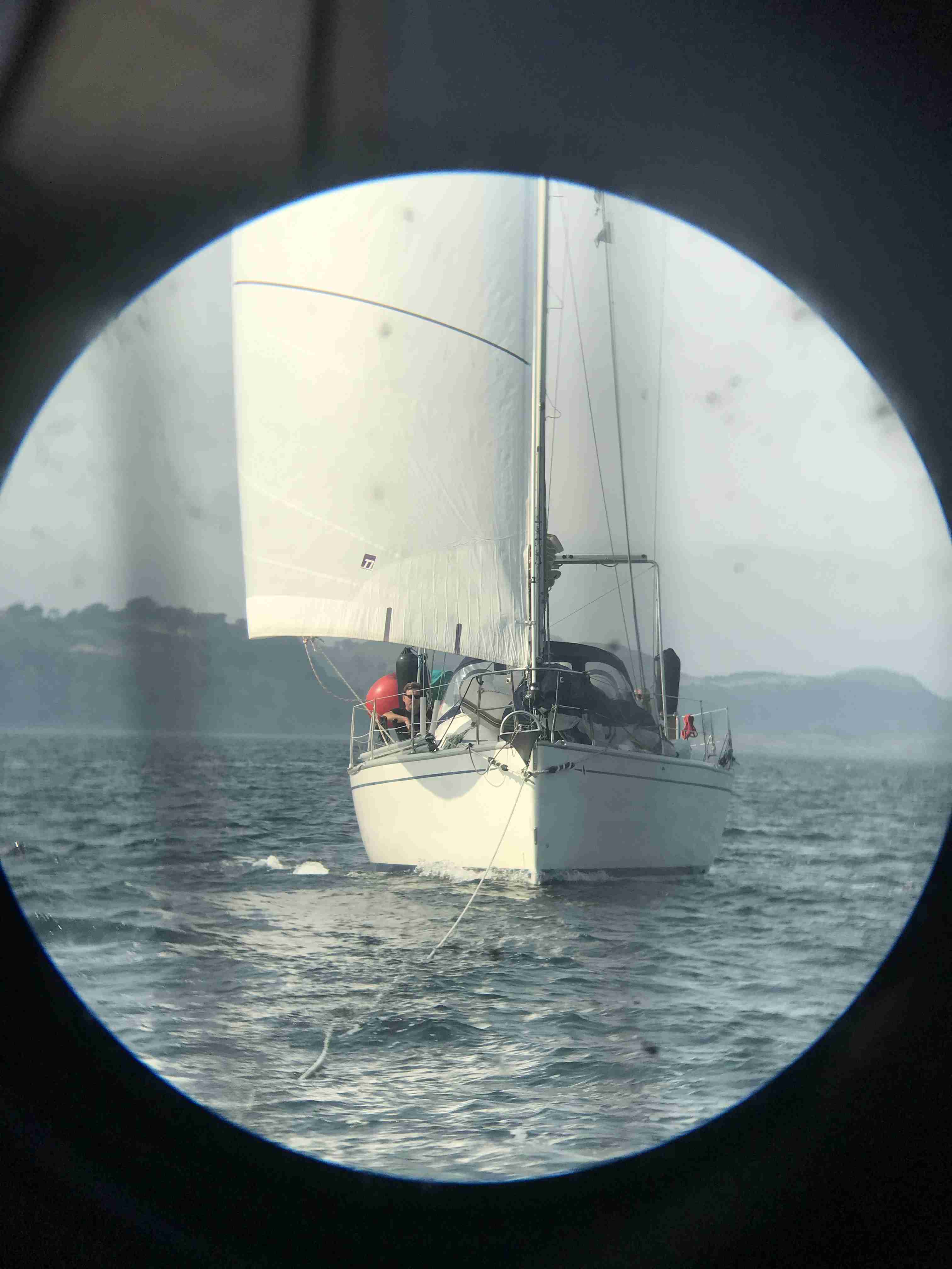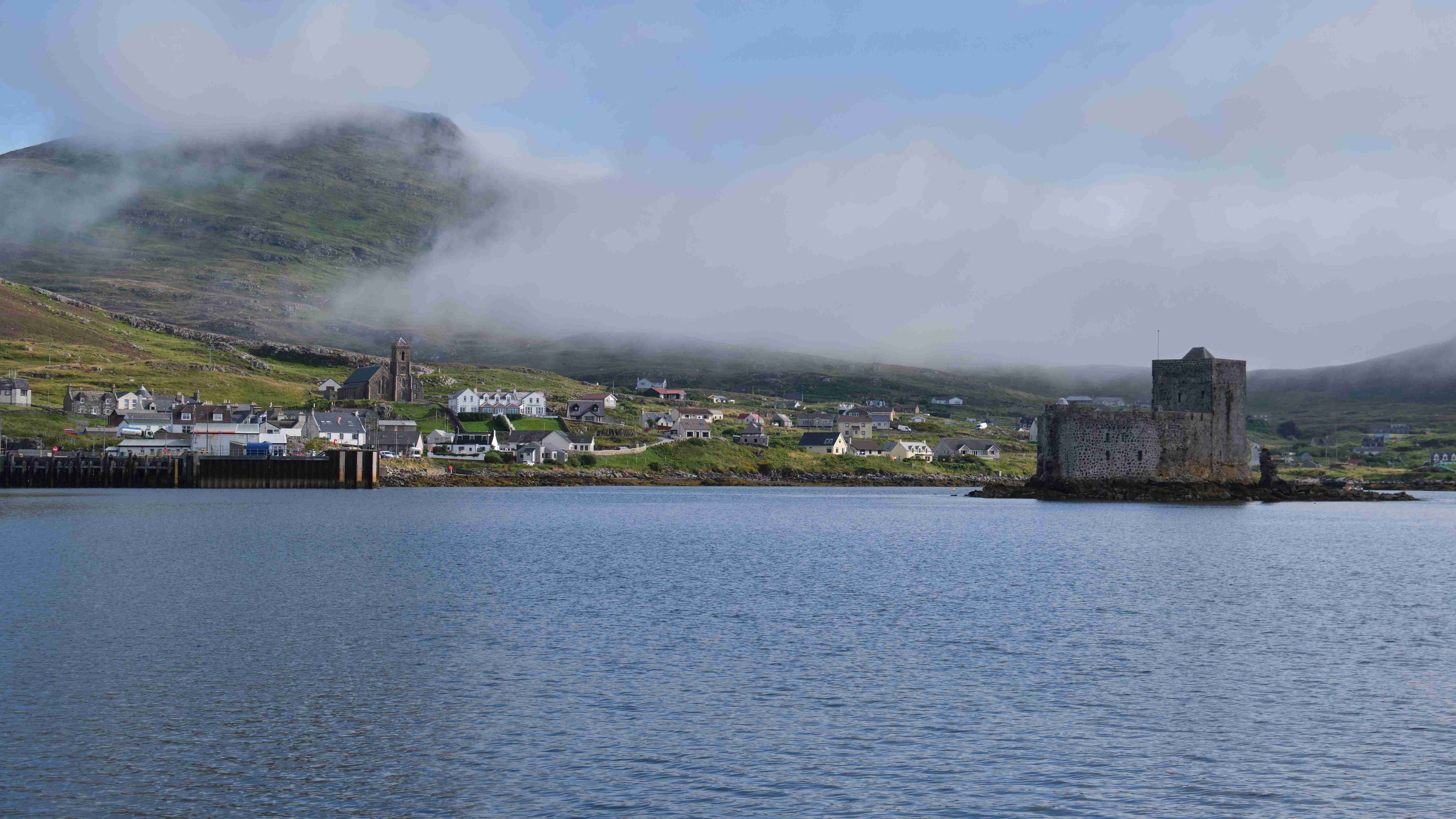Till und Sophia sind schweren Herzens nach zwei guten Wochen von Bord gegangen; wir kamen trotz mehrerer Starkwindsituationen gut voran und konnten den Rückstand von Galway wieder aufholen. Stefan und Fernando, der sich kurzentschlossen entschieden hatte, kommen zur letzten Etappe an Bord nach Barra, wir haben einen schönen ersten Abend im gleichen Restaurant und am nächsten Morgen geht es los. Wir haben ein wunderschönes Sommerwetter, ein kräftiges Hoch bildet sich über Großbritannien und blockiert die nachziehenden Tiefs. Der Nebeneffekt bedeutet aber eine Schwachwindperiode von mindestens drei Tagen, in denen Segeln fast unmöglich ist. Nach dem Ablegen in Castlebay können wir mit einer schönen Seebrise aus der Bucht kreuzen, müssen dann aber auf offener See den Motor starten und werden von aufziehendem Seenebel verschluckt. Gespenstig und schemenhaft tauchen Inseln daraus hervor.