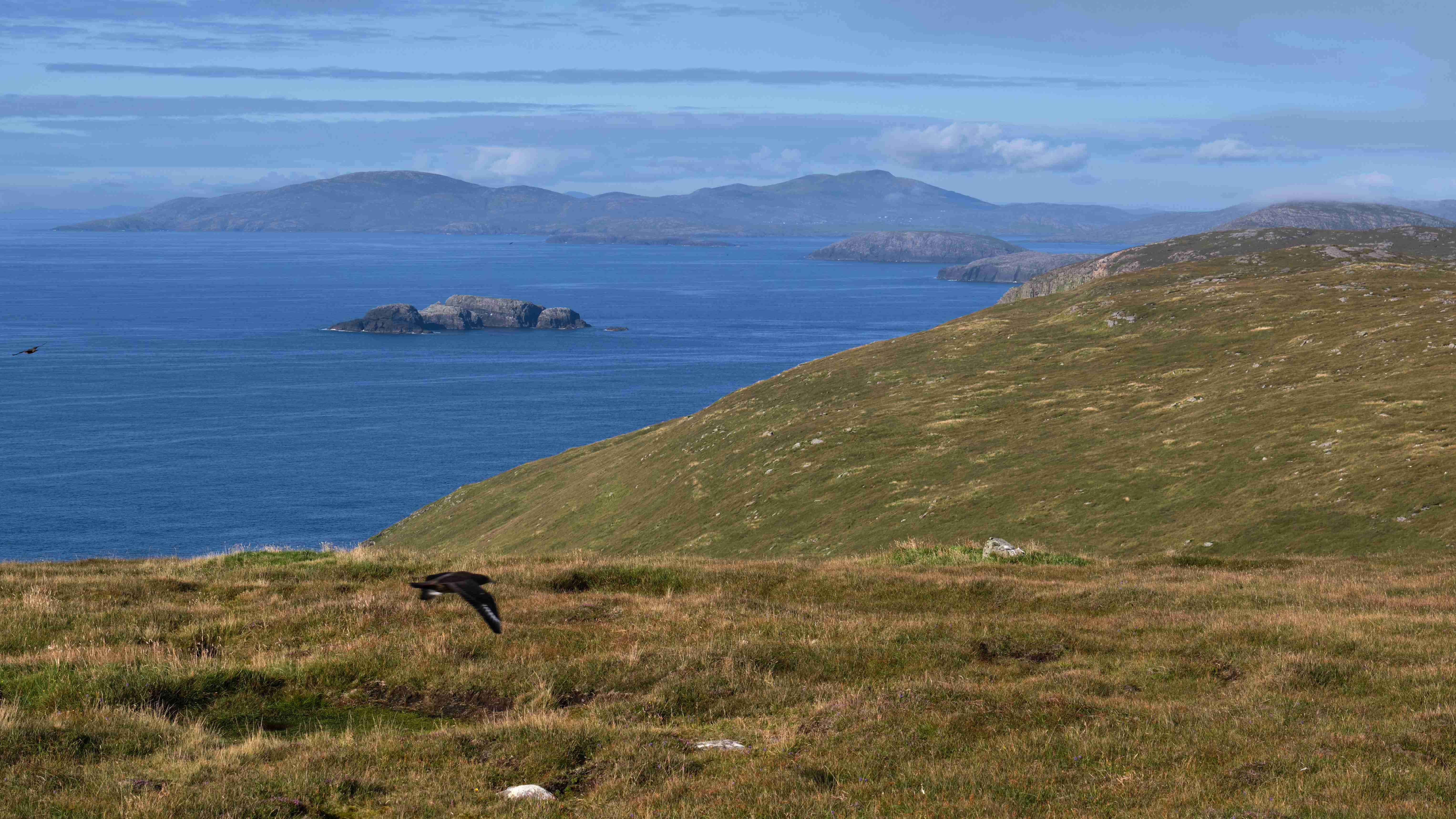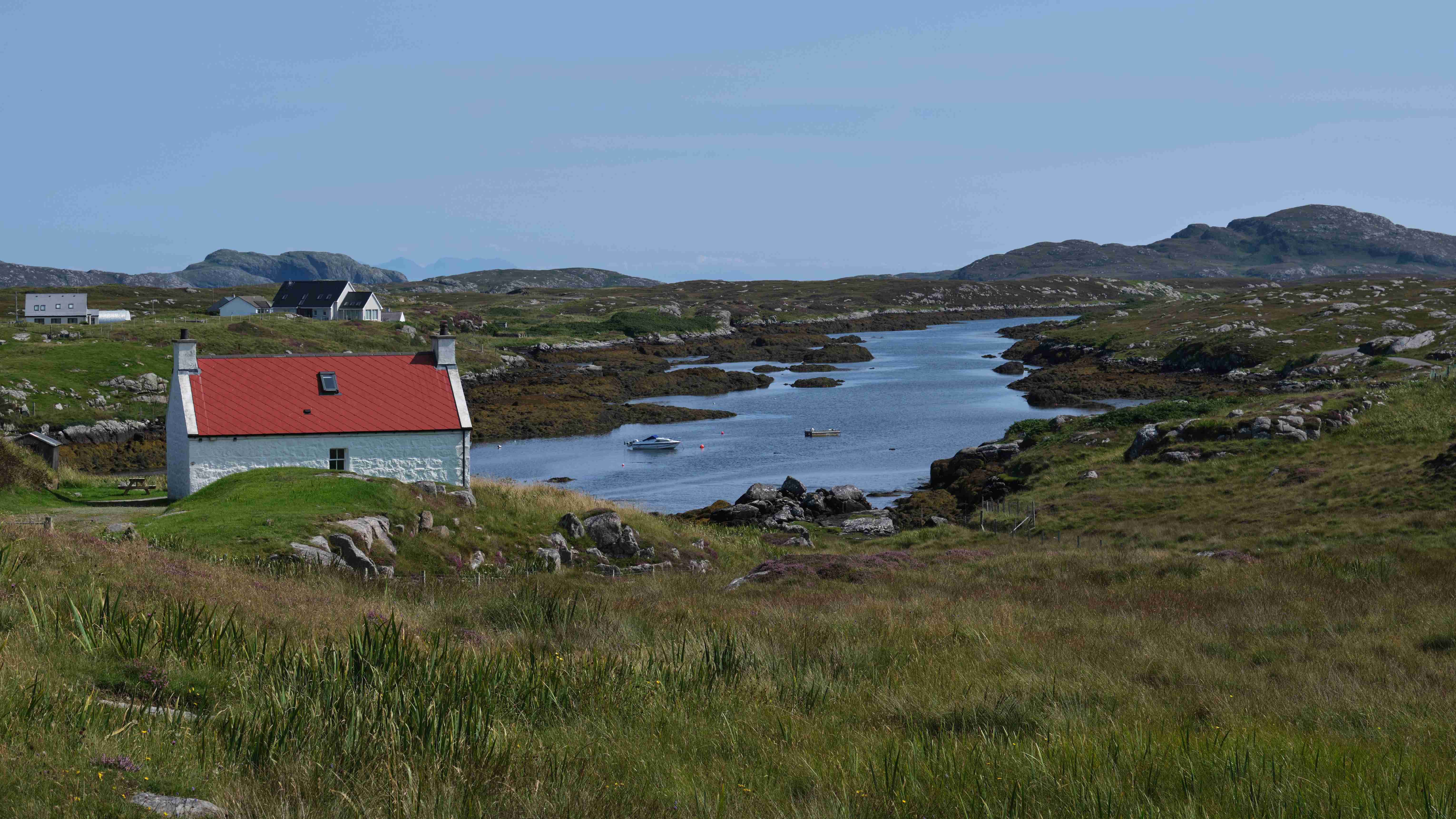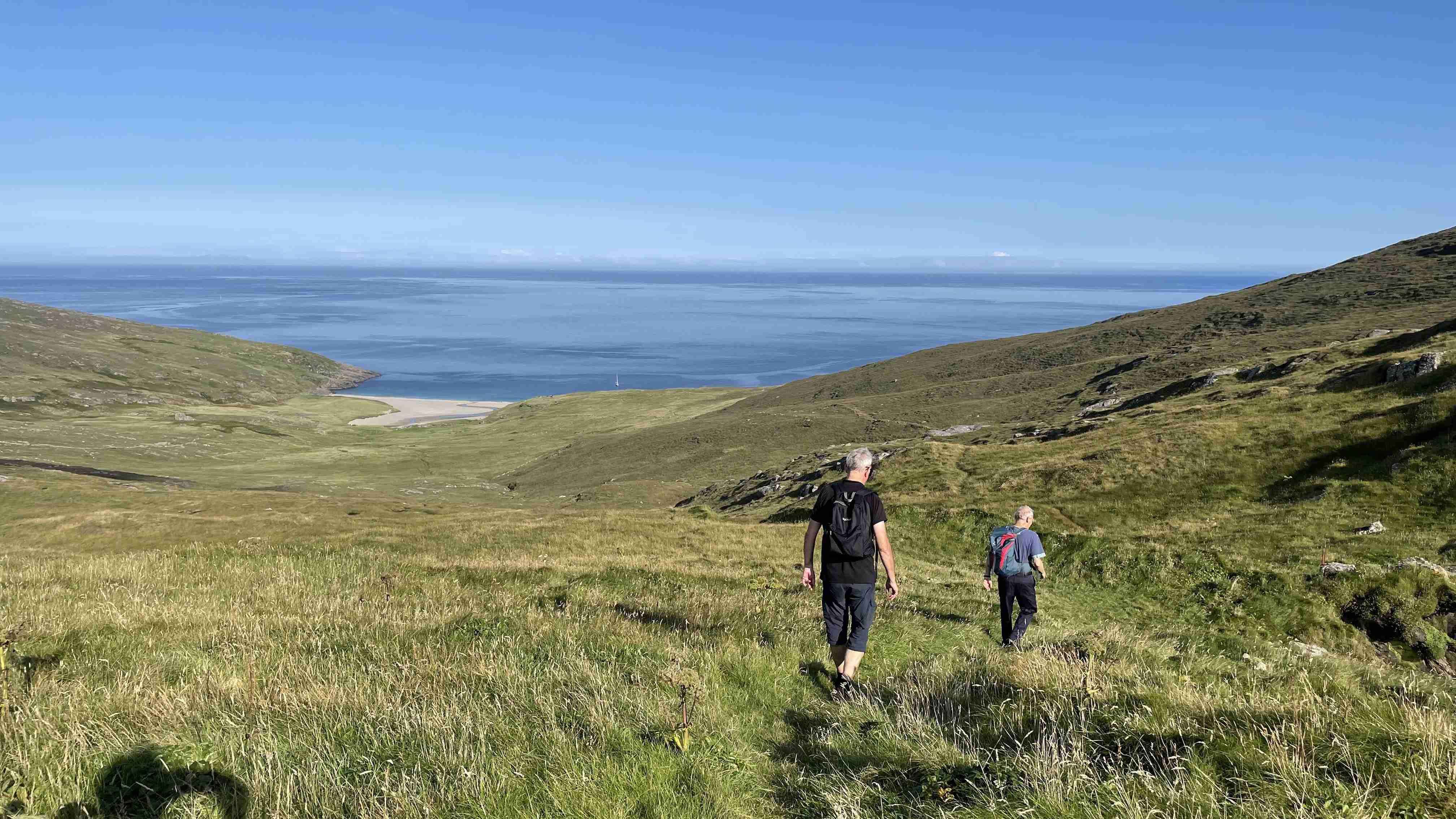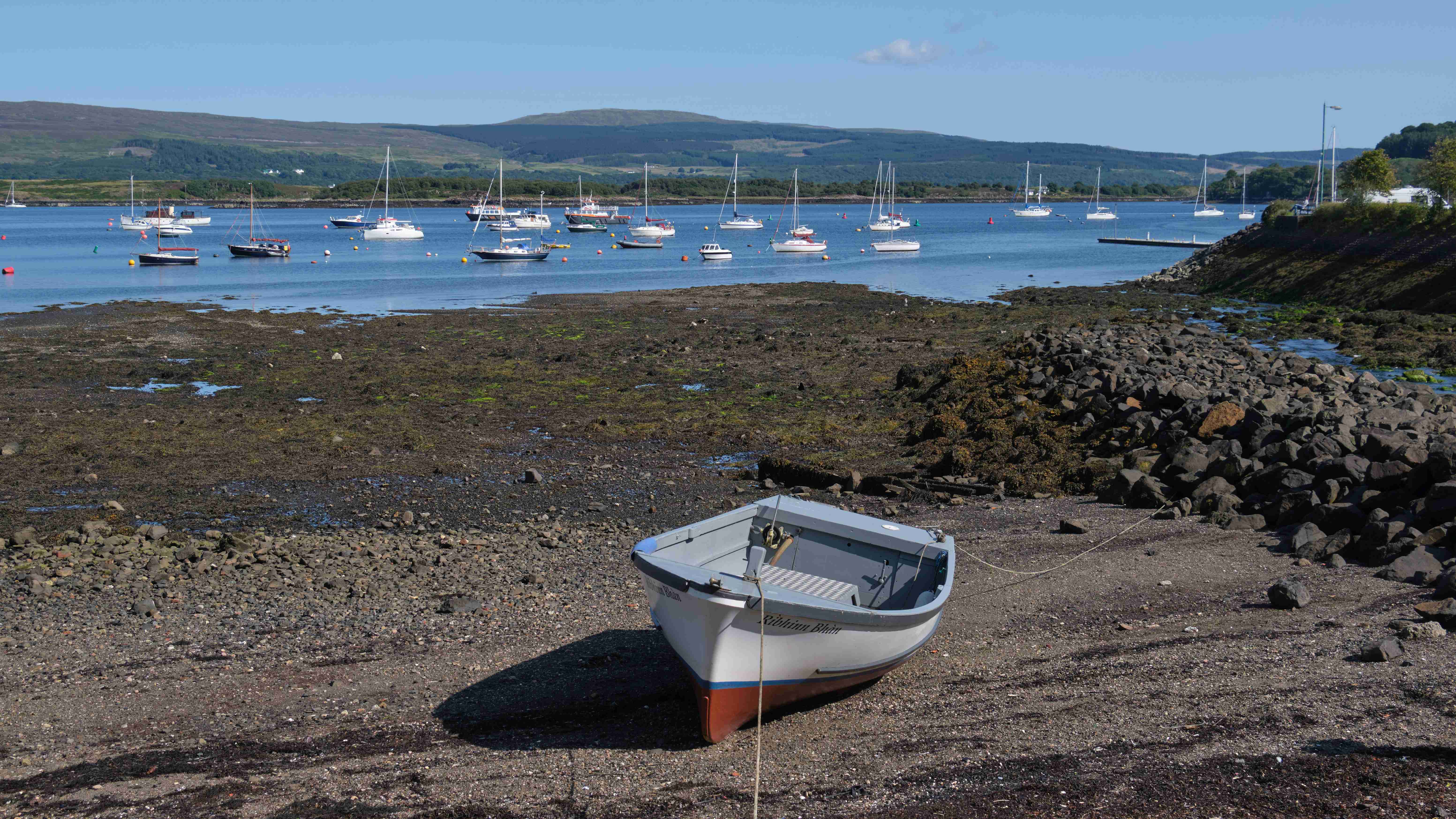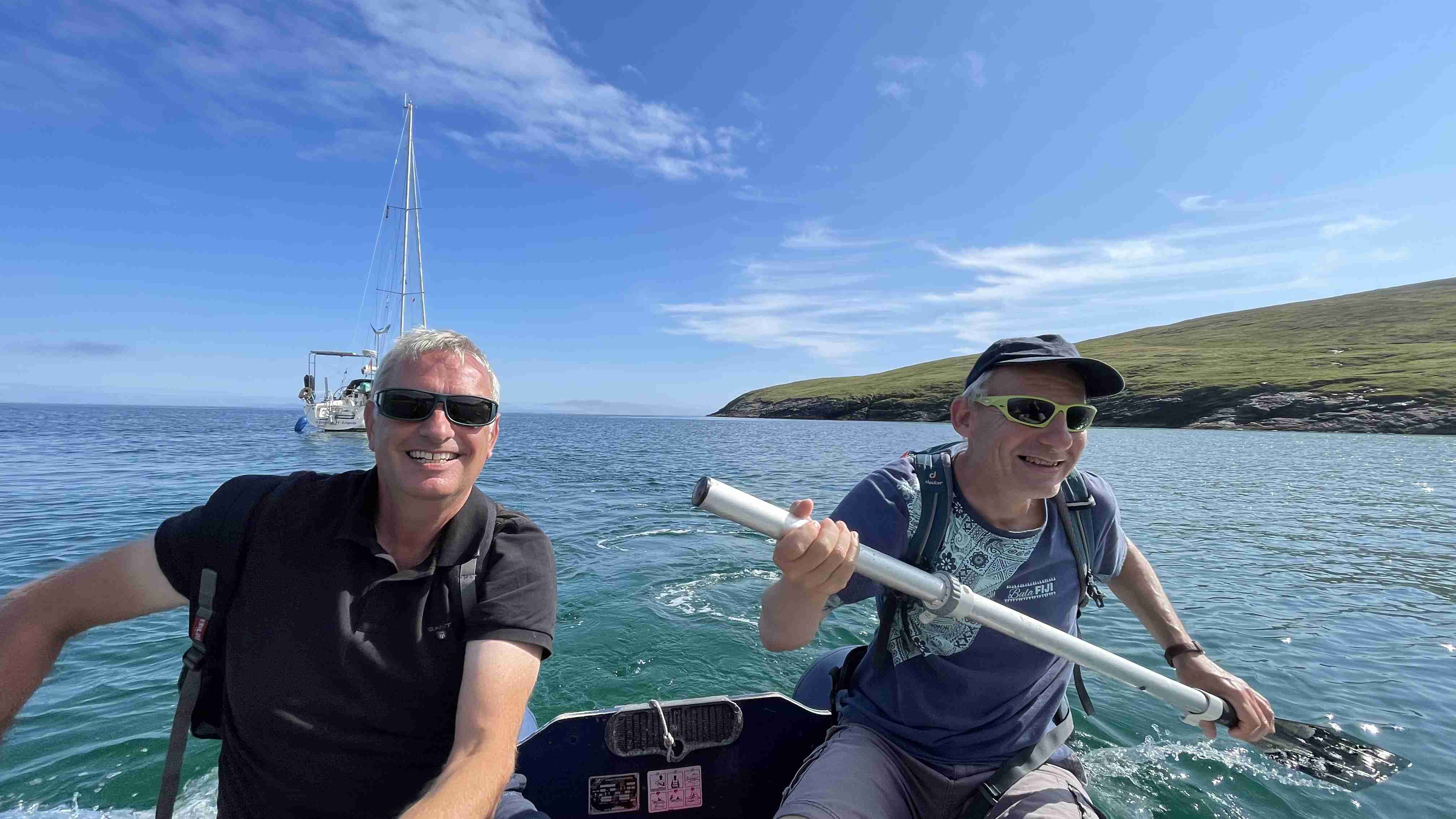 Wie vorhergesagt haben wir am Mittwoch einen guten Nordostwind und können diesen für die Überfahrt zu den Inneren Hebriden nutzen. Wir entscheiden uns gegen das südlich gelegene Tiree, da wir keine Höhe für den kommenden Tag verlieren wollen, und ankern in der kleinen Bucht Sorosdale an der Nordostspitze von Coll. Die Bucht ist recht eng, aber hinter einer kleinen vorgelagerten Insel finden wir etwas Schutz. Wir unternehmen eine kurze Wanderung und genießen weiter das gute Wetter.