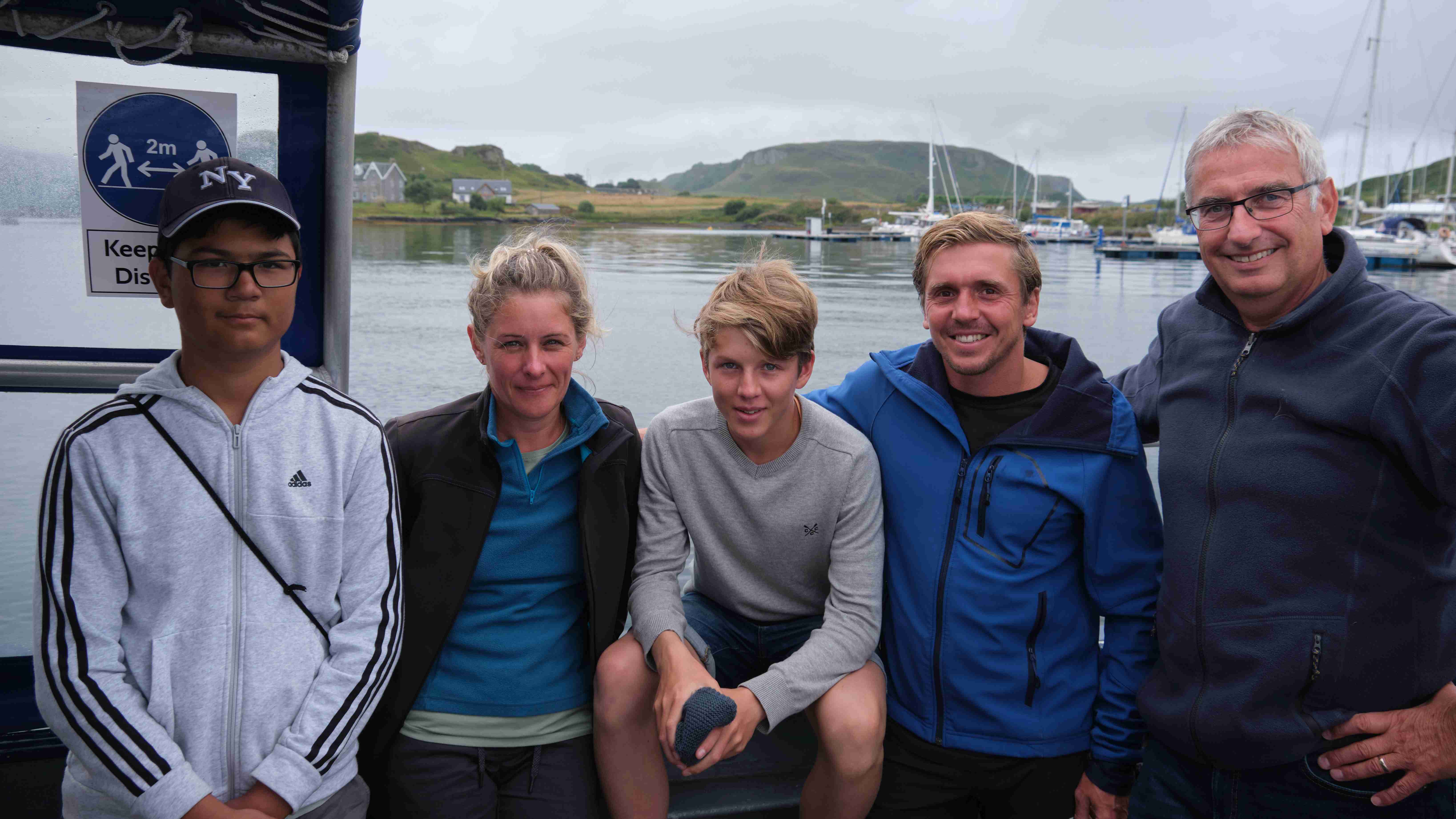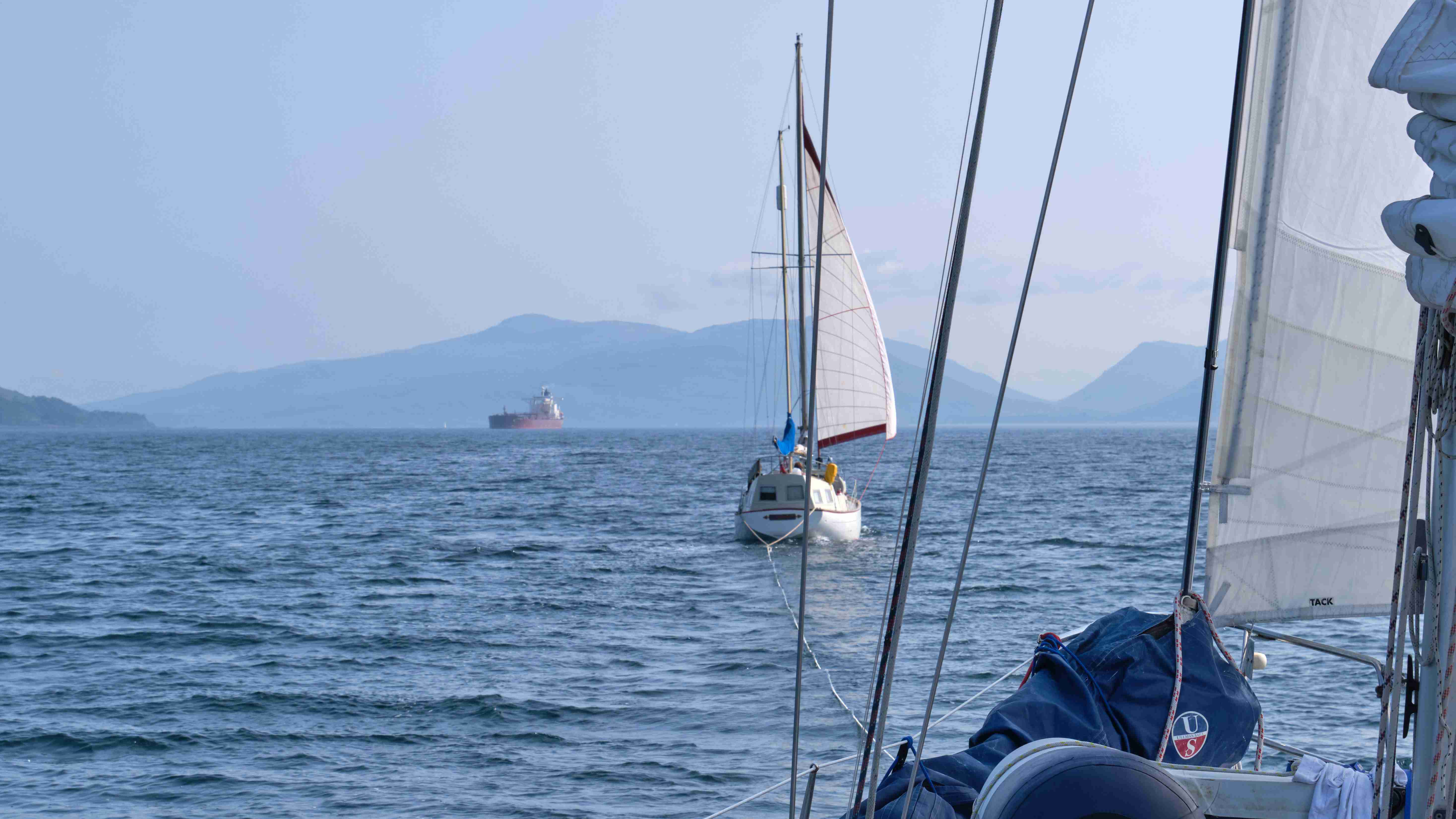 Am nächsten Morgen wollen wir für die letzte Etappe nach Oban ablegen. Ich lege den Rückwärtsgang ein und wundere mich, dass wir beim Ablegen abtreiben, vorwärts bewegt sich das Schiff überhaupt nicht, nur die Zahnräder geben Geräusche von sich, als ob sie nicht greifen können. Zum Glück ist kein Wind und wir treiben auf den gegenüberliegenden Steg zu und können uns dort festmachen. Ich löse den Bautenzug vom Getriebe und versuche es per Hand, aber kein Gang lässt sich einlegen, nur Schleifgeräusche. Die Suche nach einem Mechaniker scheitert, woraufhin wir die verbliebenen Segler im Hafen ansprechen, ob sie uns bis Oban schleppen können. Nur wenige fahren in unsere Richtung und die anderen finden Gründe, uns nicht abzuschleppen, z.B. dass sie das Boot gechartert hätten und ihnen dies nicht erlaubt sei. Zuletzt fragen wir die Leute auf einem sehr alten kleinen Boot, die uns sofort anbieten, uns abzuschleppen. Alexey und Valerie mit Sohn Artur ändern sogar ihre Pläne und verzichten auf einen Zwischenstopp in einer Ankerbucht, um uns noch am gleichen Tag bis in die Kerrera Marina bei Oban zu schleppen. Es ist eine sehr nette russische Familie, die in London lebt und hier ihre Ferien verbringt. Nun macht sich das Gespann auf den Weg. Unsere ANKE-SOPHIE mit defektem Getriebe, also ohne Antrieb, und die TIDEWATCH mit einem extrem qualmenden Motor. Wir sind uns nicht sicher, ob es uns gelingen wird, die 21 Seemeilen bis nach Oban zu überwinden, denn am Abend wird uns auch noch die Strömung am Ende des Sound of Mull mit 2 Knoten entgegenstehen. Doch der alte Motor unserer Helfer, ein stabiler Traktorenmotor, schleppt uns tatsächlich mit guter Geschwindigkeit von fast 5 Knoten bis zu den Engstellen. Beim Lady’s Rock im Firth of Lorn werden wir durch die Strudel gezogen und ordentlich geschaukelt und abgebremst, aber zeitweise können wir mit der Genua den aufkommenden Wind einfangen und können somit unterstützen. Wir sind sehr froh, in der Marina auf Kerrera vor Oban anzukommen, und spendieren eine Runde Bier. Ich wollte unsere Helfer ins Restaurant einladen, aber das ist leider geschlossen. Nun werden wir auch noch zwei Mal von Alexey zum Essen eingeladen. Verkehrte Welt. Wir wollen uns bedanken und werden stattdessen eingeladen. Wir tragen mit unseren letzten Weinbeständen dazu bei. Artur geht auf eine deutsch-englische Schule und darf die Beschriftung des aus Deutschland mitgebrachten Weinkanisters übersetzen. „Erste Hilfe für leere Gläser“, alle lachen herzlich, es sind zwei nette Abende, die wir gemeinsam verbringen.