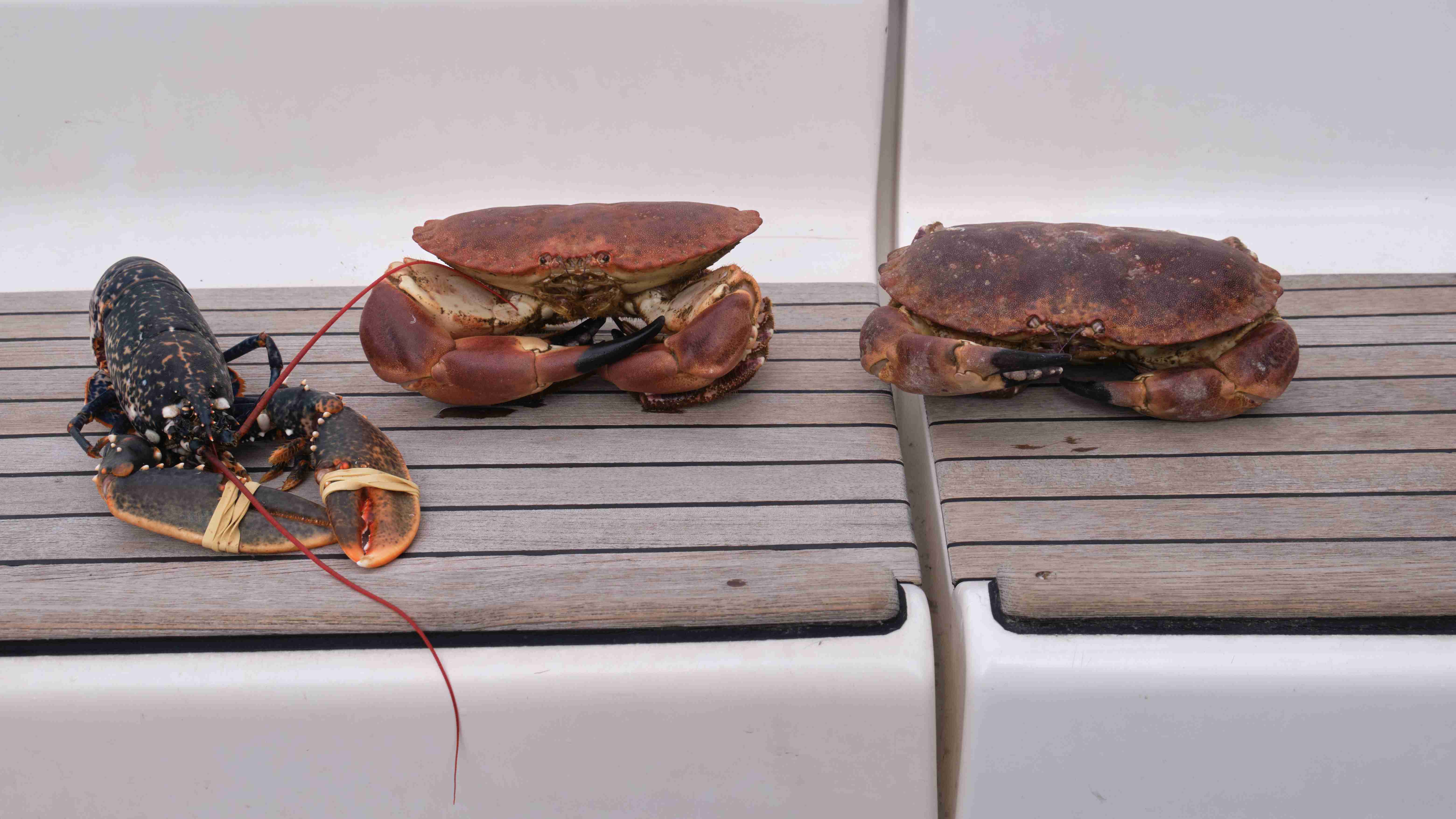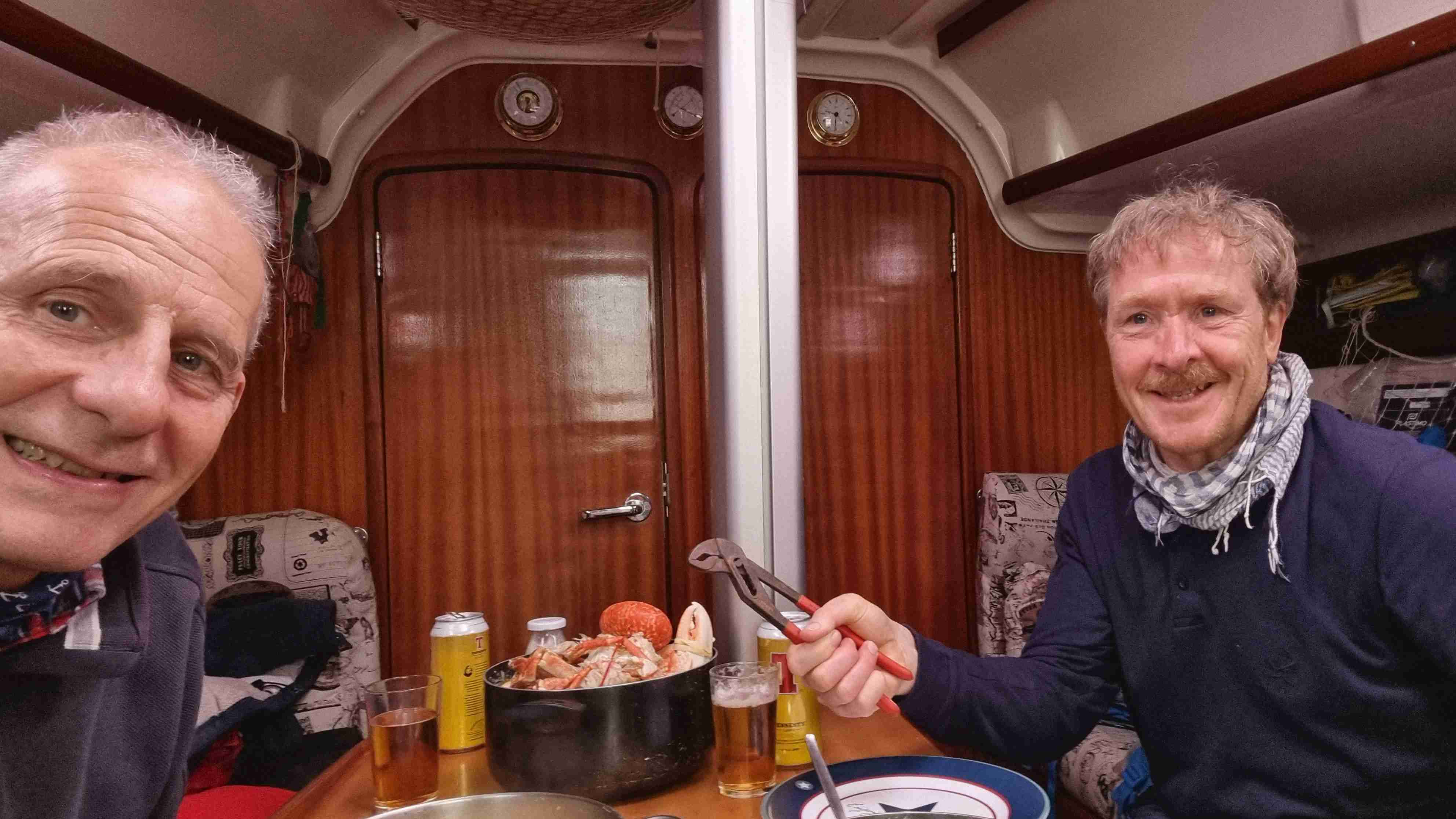 Pleiten, Pech und Pannen: Als wir ankommen, riechen wir es bereits; aus dem Tank sind literweise Diesel ausgelaufen und schwimmen nun in der Bilge. MacTom hatte aus Versehen beim Bilgereinigen den Dieselschlauch am Tank gelöst, sodass durch die extreme Welle Diesel herausschwappen konnte. Es folgt eine tagelange Reinigungsaktion, um den Gestank wieder aus dem Schiff zu bekommen. Zwischendurch Spaziergänge in der wunderschönen baumlosen Landschaft. Zum Abschied schenken uns Fischer noch zwei große Krabben und einen Hummer, die sofort verarbeitet werden.