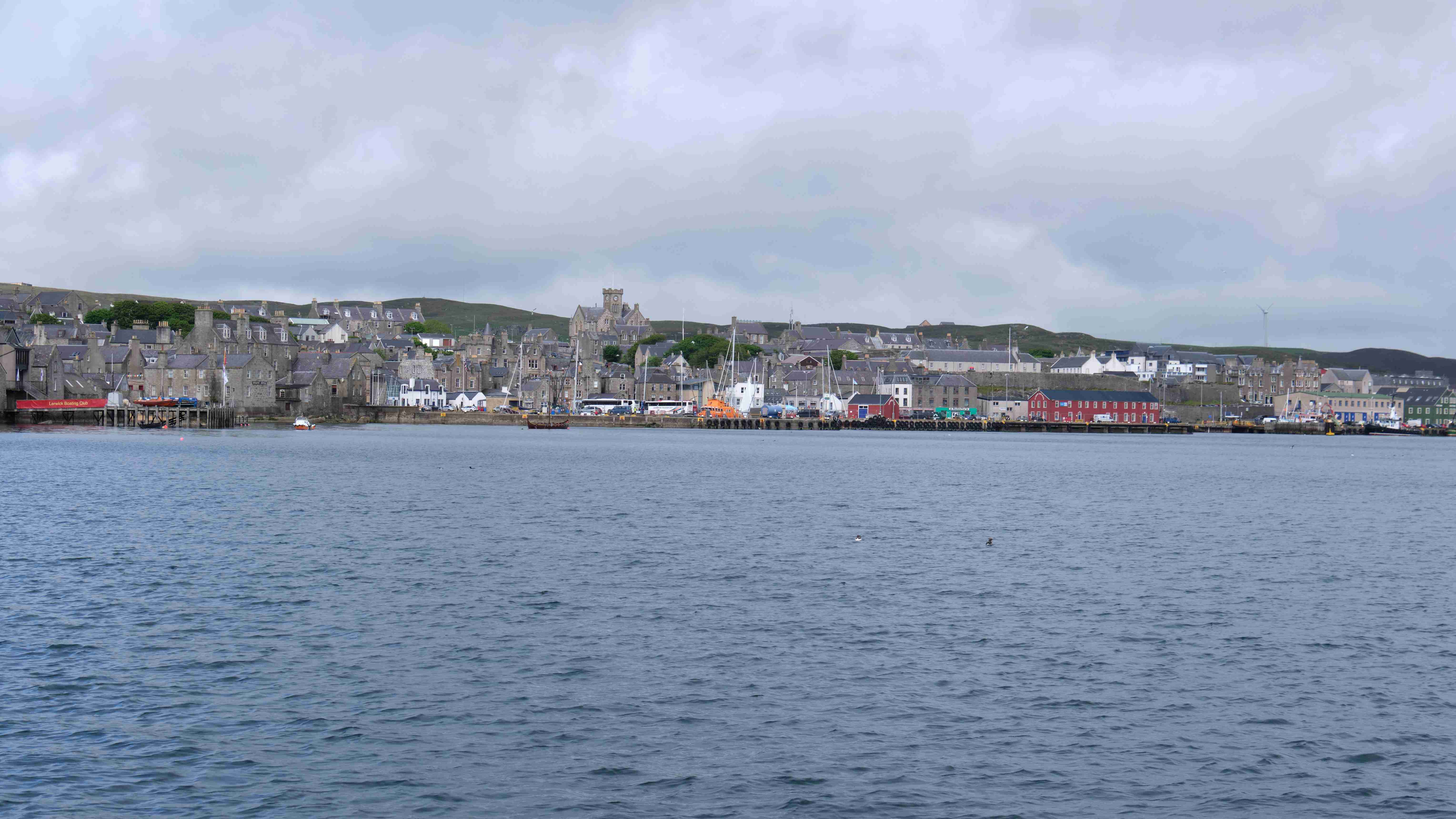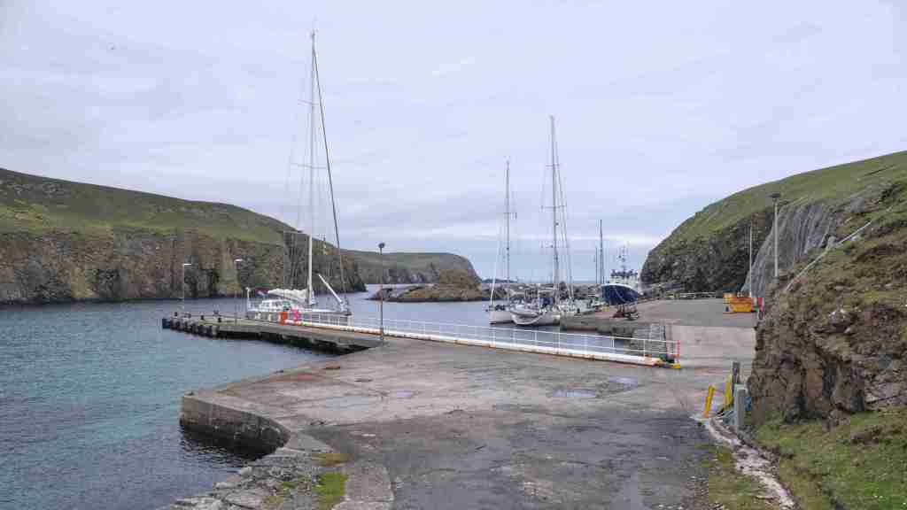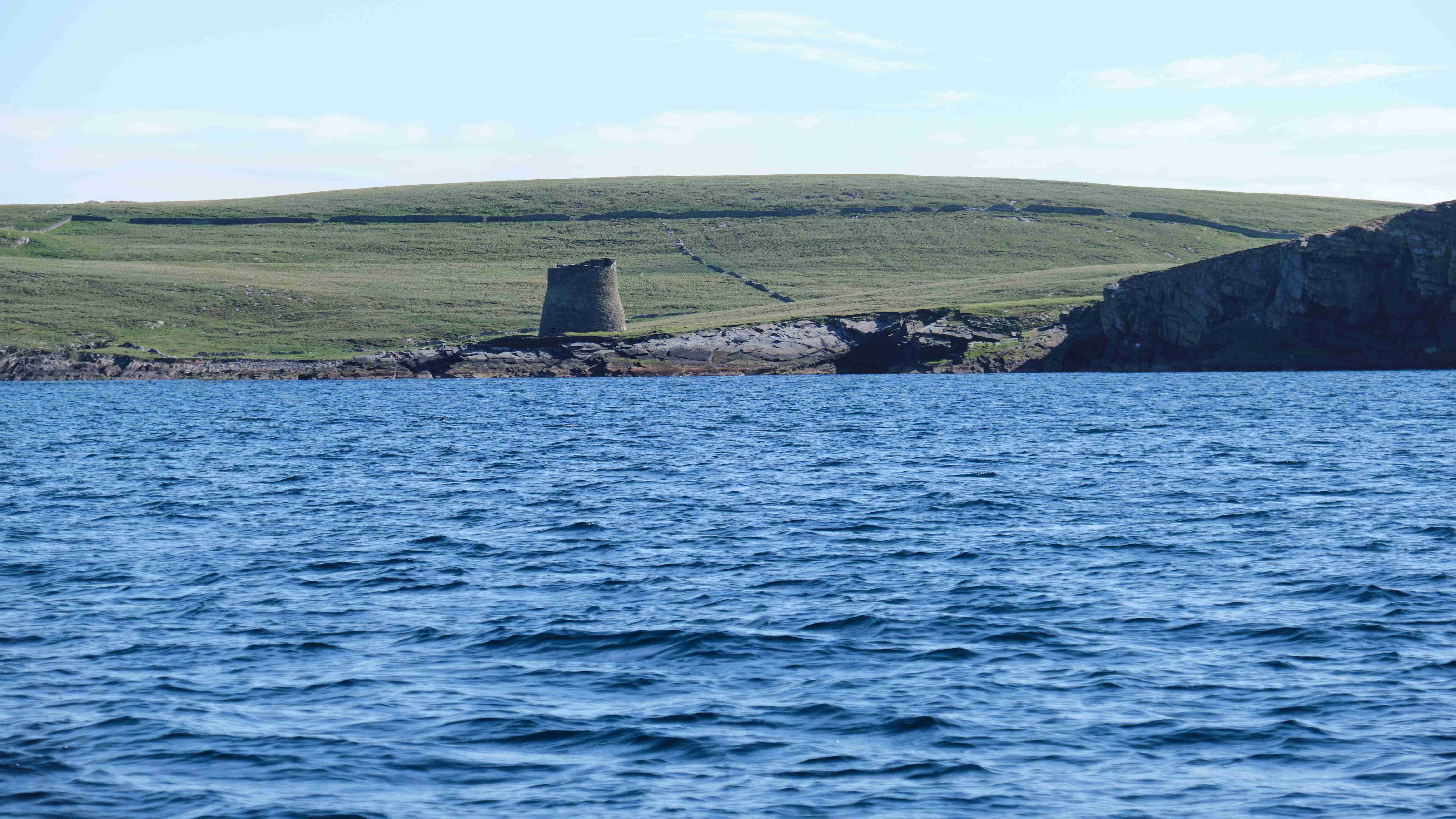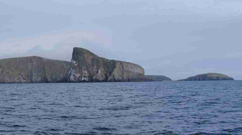 Da der Wind für den nächsten Tag droht ganz einzuschlafen, entscheiden wir uns noch am Nachmittag, die Leinen zu lösen und zusammen mit Marie-Claire und Dave von der Segelyacht La Contenta zu den Shetlands zu segeln. Leider müssen wir das letzte Stück bei Nieselregen motoren und entscheiden uns in der kleinen Bucht Voe zu ankern. Am nächsten Morgen segeln wir bei herrlichem Wetter – die Entscheidung war also richtig – das letzte Stück der wunderschönen Küste bei teilweise lachender Sonne bis Lewrick. Im Mousa Sound sehen wir den alten Broch of Mousa, einen der besterhaltenen Schutztürme Schottlands. Nun haben wir wegen des heranziehenden Sturmtiefs wieder eine Pause von drei Tagen.