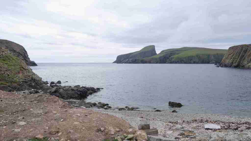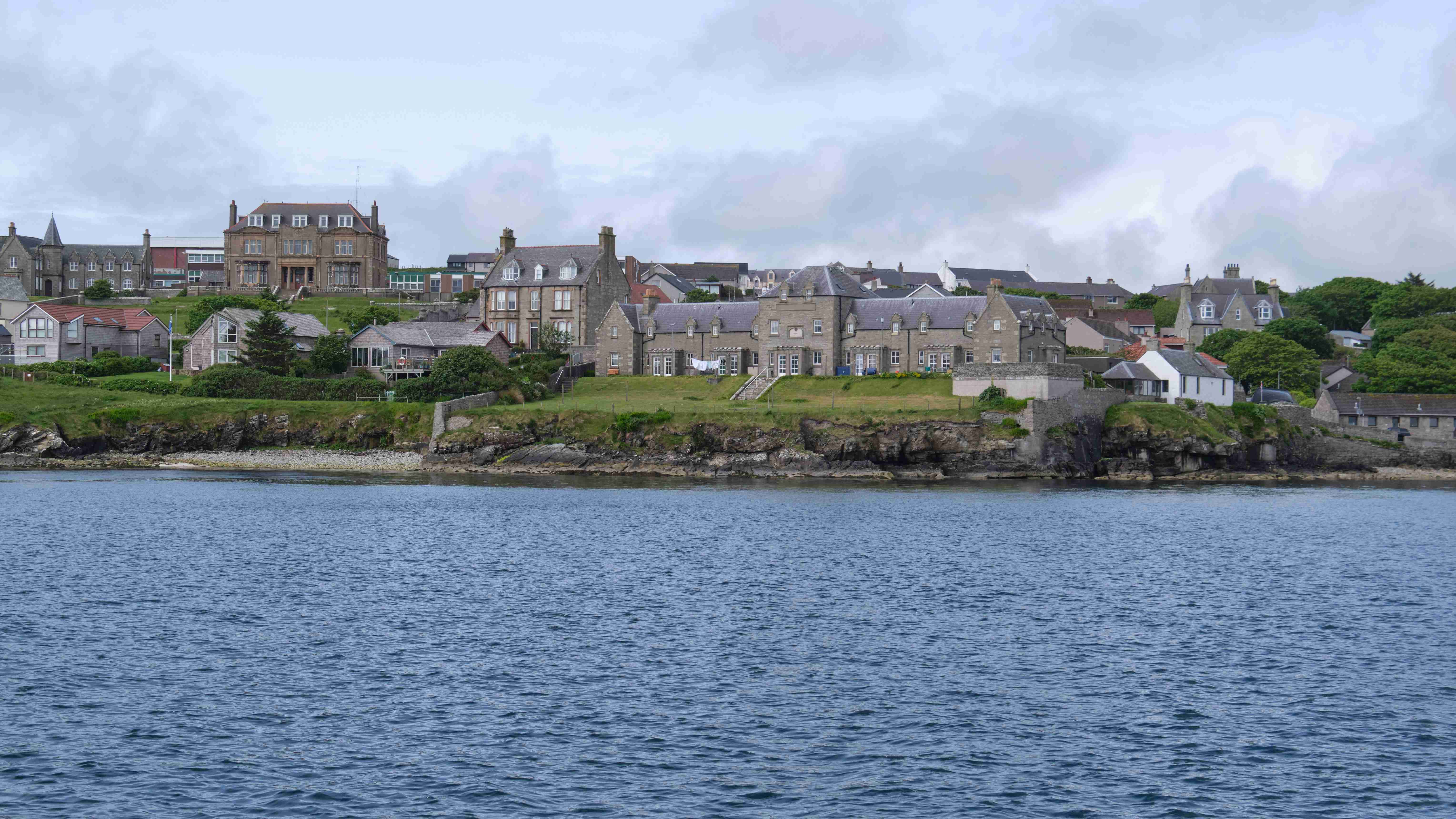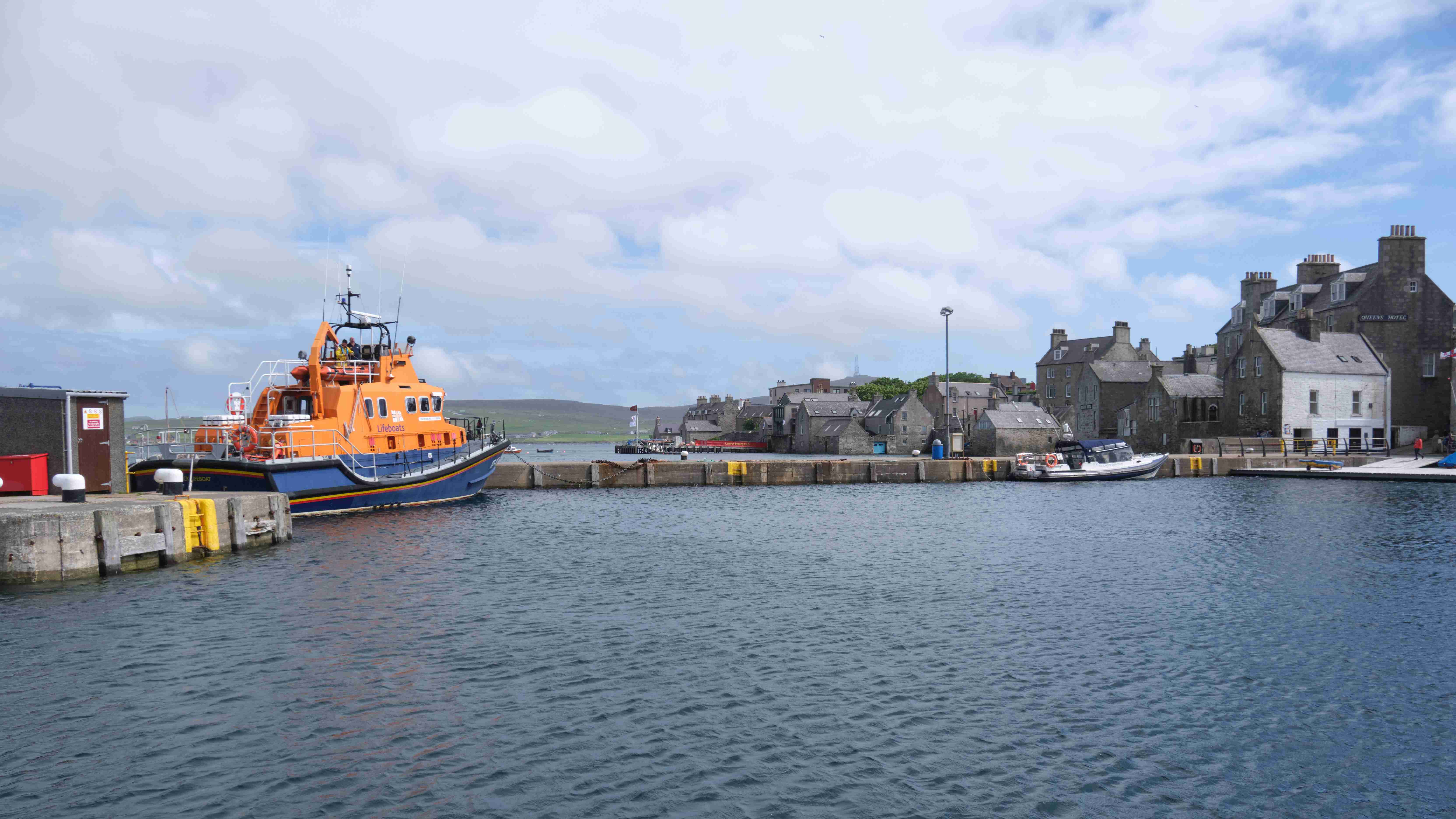 Da der Wind für den nächsten Tag droht ganz einzuschlafen, entscheiden wir uns noch am Nachmittag, die Leinen zu lösen und zusammen mit Marie-Claire und Dave von der Segelyacht La Contenta zu den Shetlands zu segeln. Leider müssen wir das letzte Stück bei Nieselregen motoren und entscheiden uns in der kleinen Bucht Voe zu ankern. Am nächsten Morgen segeln wir bei herrlichem Wetter – die Entscheidung war also richtig – das letzte Stück der wunderschönen Küste bei teilweise lachender Sonne bis Lewrick. Im Mousa Sound sehen wir den alten Broch of Mousa, einen der besterhaltenen Schutztürme Schottlands. Nun haben wir wegen des heranziehenden Sturmtiefs wieder eine Pause von drei Tagen.