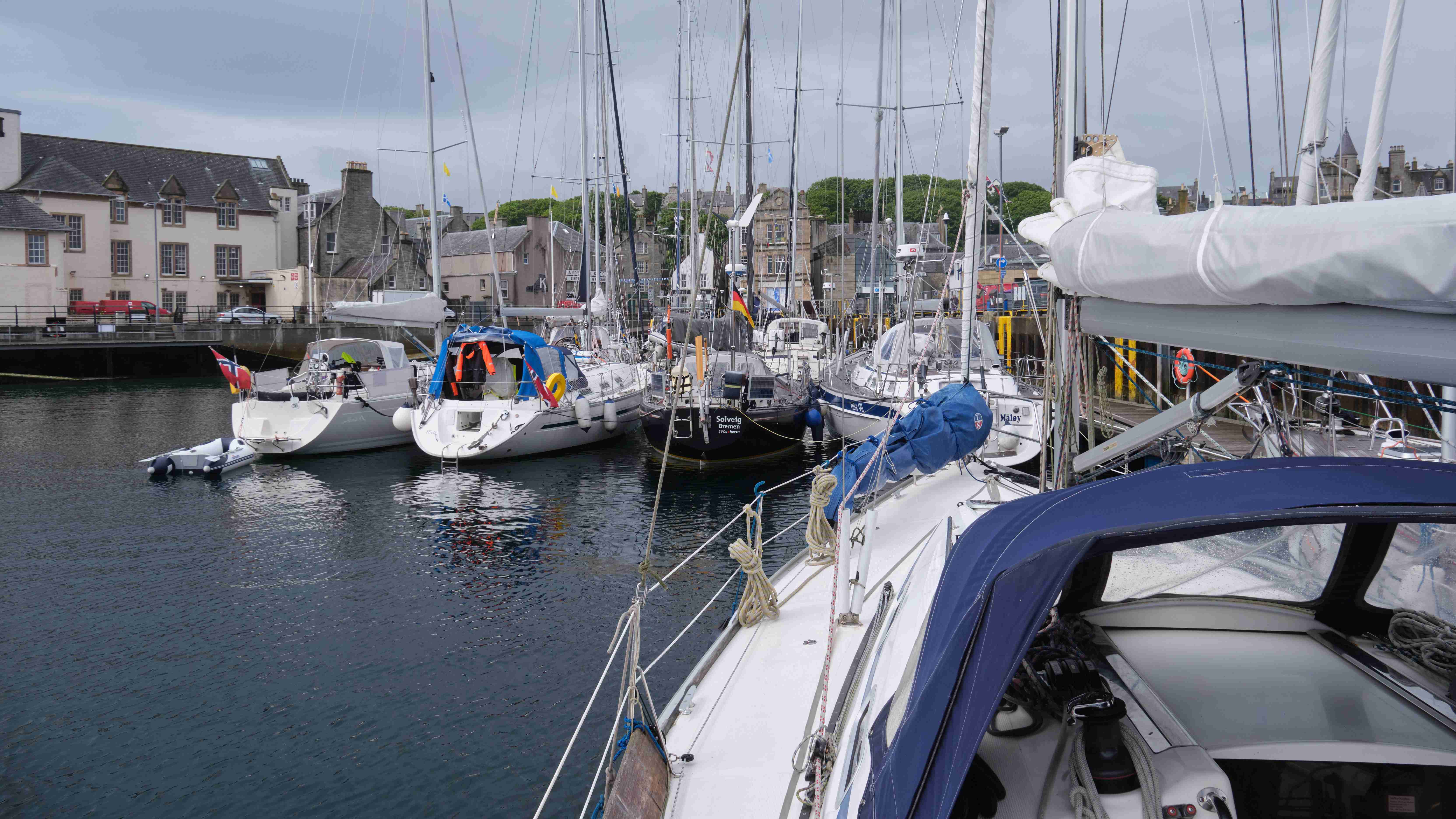 Ein mächtiges Tief kommt mit Wind >50 Knoten in den Böen auf uns zu. Wir legen am Donnerstag 09.06.2022 ab, um in Richtung Stromness auf den Orkneys zu segeln. Leider wird der Wind vor Cape Wrath, der Nordwestecke von Schottland, so schwach, dass die Wellen die Segel laut schlagen lassen, und die Aussichten für die Nacht sind ebenfalls schwachwindig. Die Ruhe vor dem Sturm lässt uns den Fischereihafen Kinlochbervie als Unterschlupf für die nächsten drei Tage wählen.