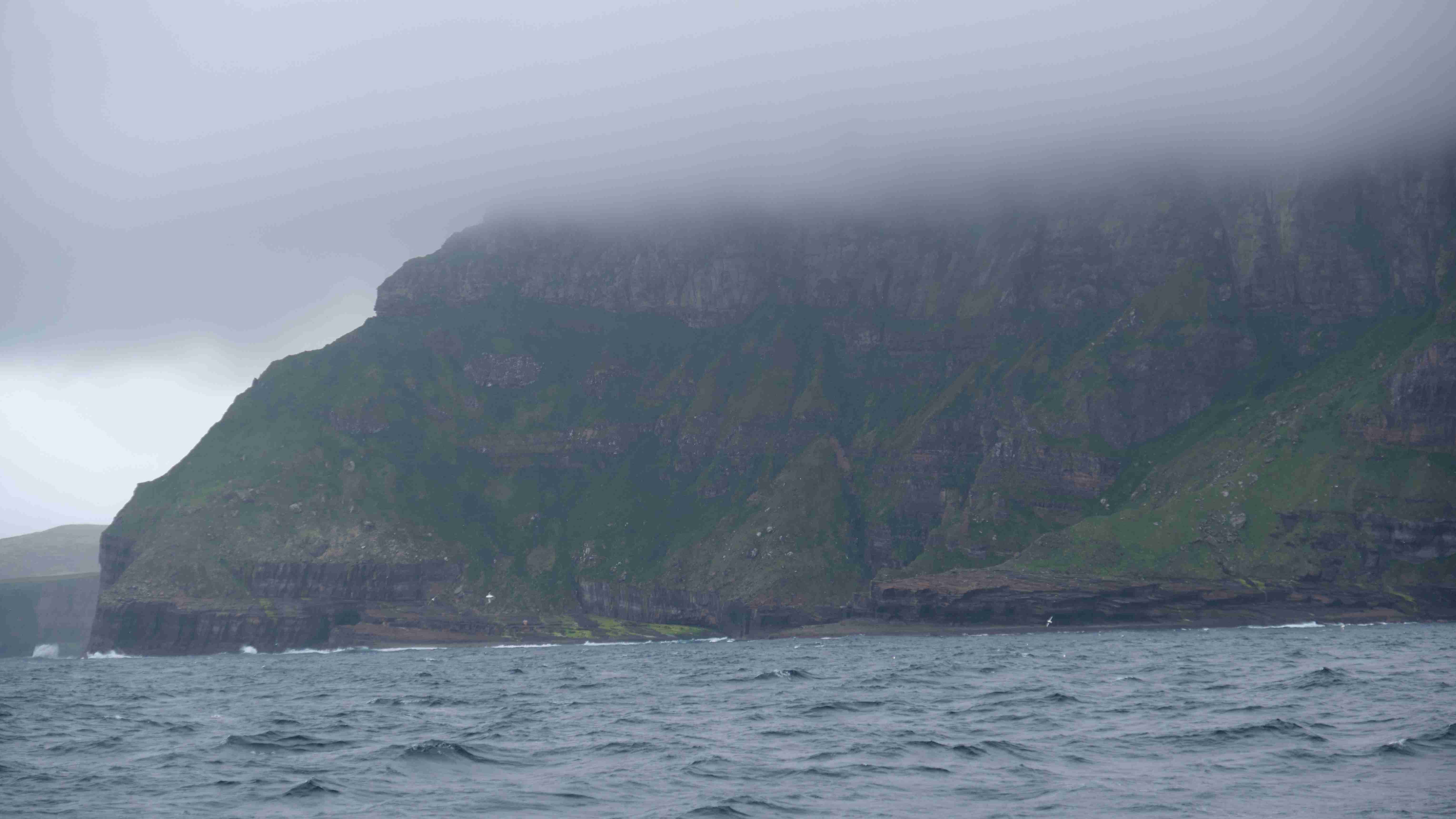 Trotz noch sehr starker alter Dünung und angekündigten Böen bis 25 kn (6 Bft) legen wir um 04:50 ab, um am Abend den optimalen Zeitpunkt für das Einlaufen in den Sound of Moy um 16:20 (start east-going stream) zu treffen.