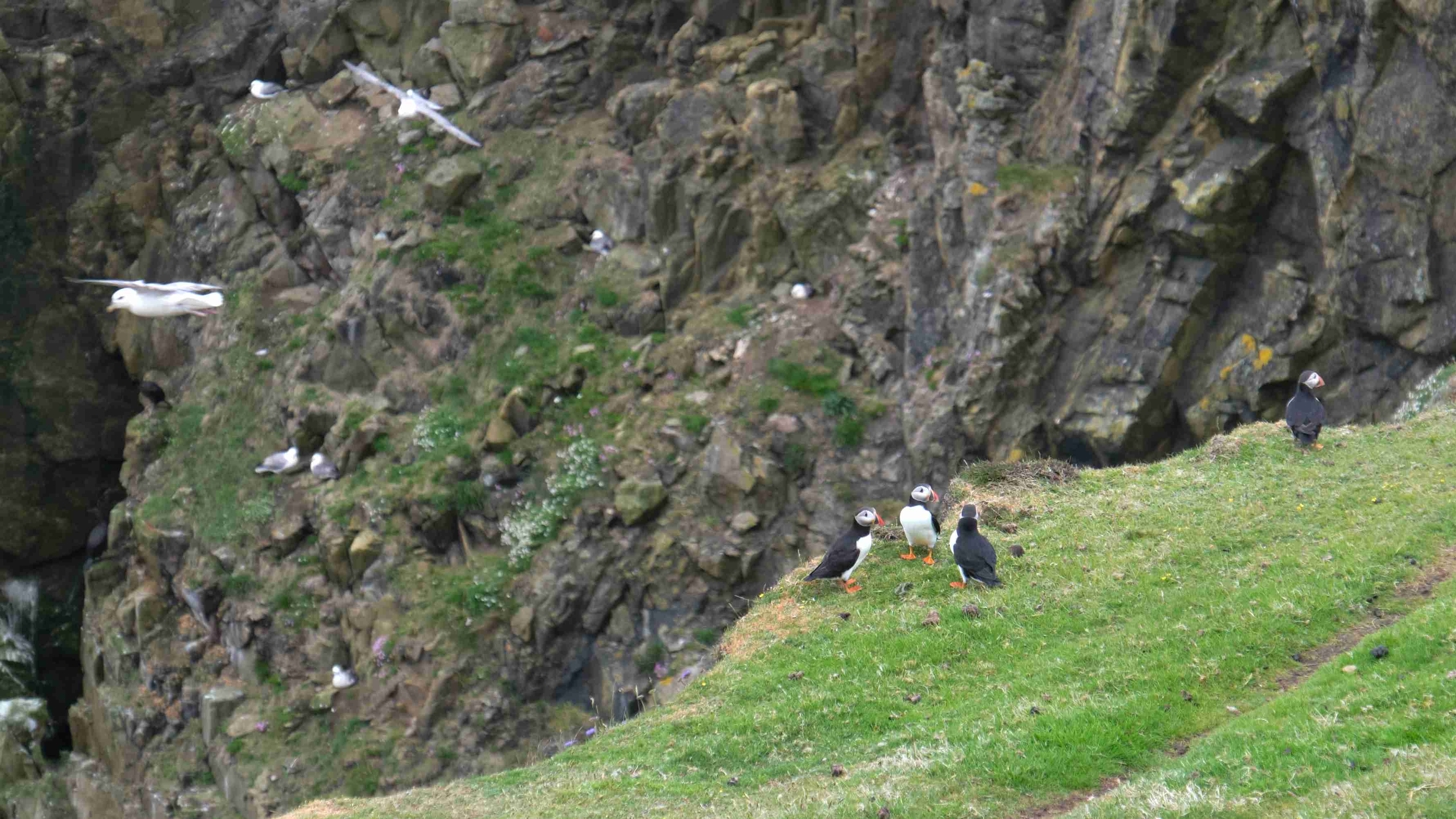 Nach einer sehr schönen Überfahrt bei leichtem Wind und mäßiger Welle -auch das gibt es also hier oben- segeln wir einem von mir lange ersehntem Ziel entgegen: Fair Isle. Durch Berichte anderer Segler ist mir die Insel allgegenwärtig und ich freue mich auf Fridarey (die friedvolle Insel) oder Fara (die entlegene Insel), wie ihr nordischer Name lautet. Sie liegt zwischen den Orkney und den Shetland-Inseln. Im natürlichen Nordhafen haben schon viele Yachten schwere Stürme abgewettert. Wir wandern über die Südinsel bis zum Leuchtturm, haben nette Gespräche mit einem der 60 Inselbewohner und erhalten von einem britischen Vogelkundler Tipps, wo wir die ersehnten Papageientaucher bzw. Puffins finden können. Insgesamt wurden von Vogelkundlern 335 Arten im Bird Observatorium registriert.