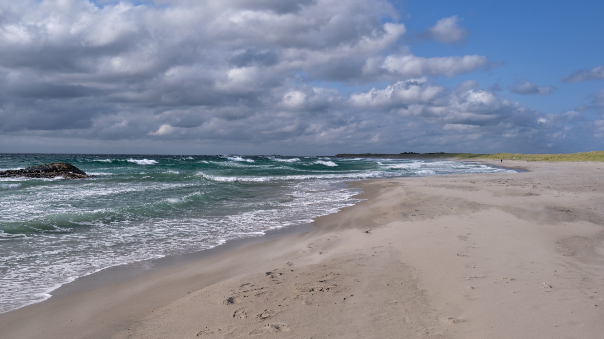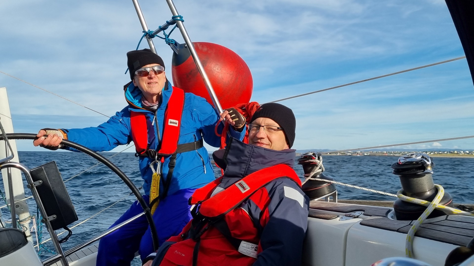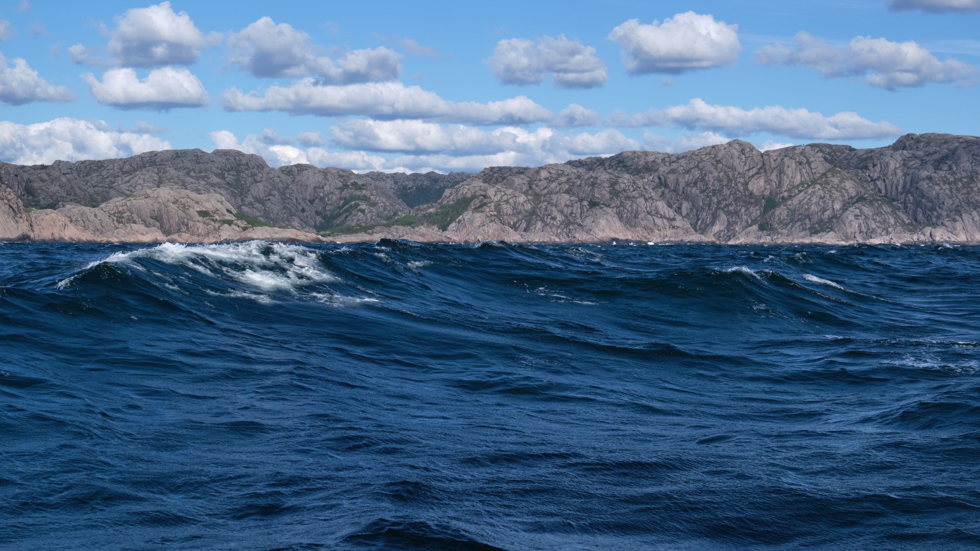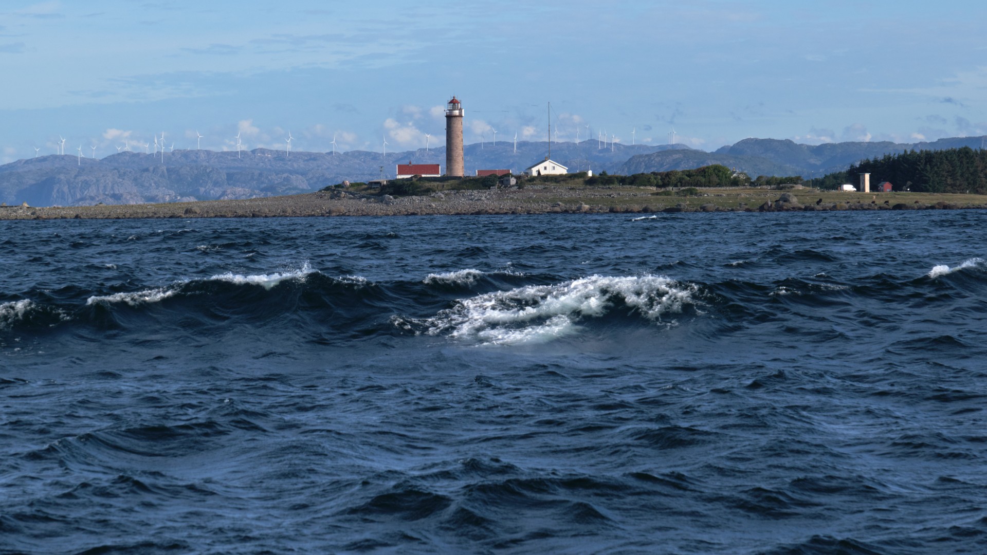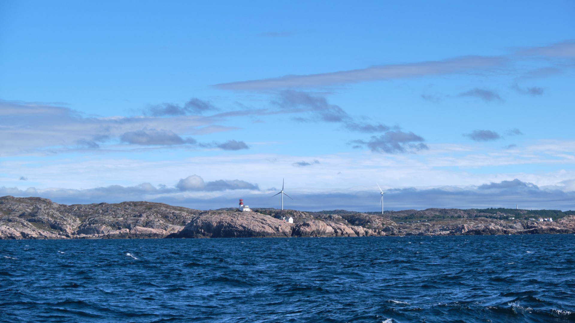Leider stimmte die Prognose nicht ganz, denn tatsächlich ist am Dienstag stärkerer Wind als am Montag, wir stehen deshalb um 6 Uhr auf und frühstücken unterwegs im Fjord, solange keine Welle steht. Wir kommen flott voran, bis wir um das Kap bei Lista kommen. Zunächst kreuzen wir noch unter angenehmer Welle und gemäßigtem Wind die Küste entlang, aber leider nimmt er ab 10 Uhr so stark zu, dass wir uns entscheiden umzudrehen. Bei Böen von 32 kn von vorne hört der Spaß auf. Wir erreichen das gesteckte Ziel Farsund nicht und laufen 4 sm ab nach Lista bzw. Borshavn, wo wir geschützt die nächsten Tage verbringen werden.