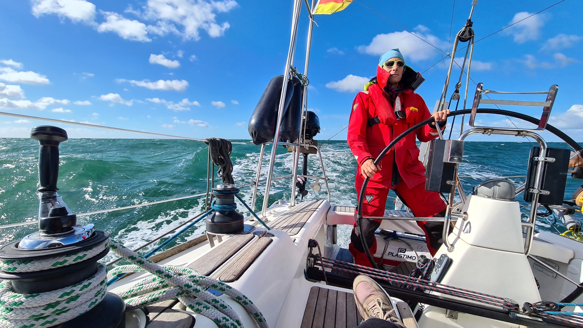 Am nächsten Tag wollten wir eigentlich nach Anholt segeln. Der Hafen ist nach Westen geöffnet und nur 3,7 m tief. Nachts habe ich gegrübelt und beim Pfeifen in der Takelage reiften die Argumente dafür, dass dies keine gute Idee ist bei Windböen bis 32 kn aus West. Also habe ich um 4:30 Uhr den für 5 Uhr gestellten Wecker ausgeschaltet und ausgeschlafen. Beim Frühstück entscheiden wir uns für Falkenburg an der schwedischen Küste und schaukeln mit über 8 kn bis 16:15 vor dem Wind durch eine schon mächtige See die 58 sm hoch und runter… Die Einfahrt in den Industriehafen ist unter Genua gut segelbar und wir finden einen gemütlichen Platz im Yachthafen, leider mit Wind von achtern, sodass die Wellen gegen die achterlichen Kojen klatschen.