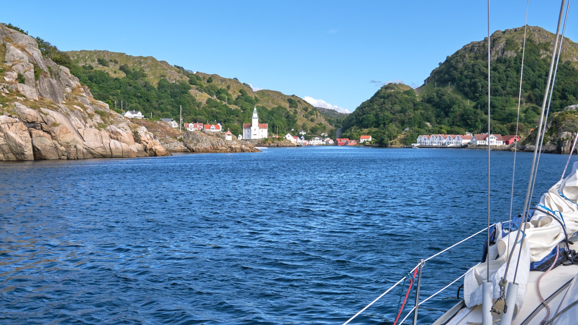 Am Abend segeln bzw. motoren wir durch den geschützten Fjord bis Flekkefjord, eine nette Stadt am Ende des Fjords, und freuen uns, so geschützt zu liegen. Wir gönnen uns eine Fischsuppe im Restaurant.