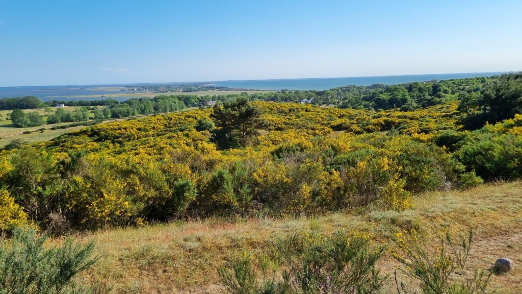 Auf dem Törn im Juni nach Hiddensee mit Christl und Harald blüht endlich der Ginster.