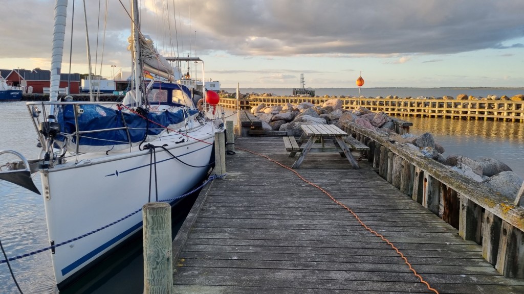 Den folgenden Tag funktioniert es weiter mit dem Wind, der inzwischen auf Süd gedreht hat und uns weiter halben Wind entlang des Smålandsfarvandet (das Fahrwasser zwischen Sjælland und Lolland) bringt, das dann in den Grønsund mündet. Wir machen nach einem gemütlichen Tag an Bord und weiteren 44 sm in Hesnæs fest und leiten den Abend mit einem Aperitif im netten Café ein.