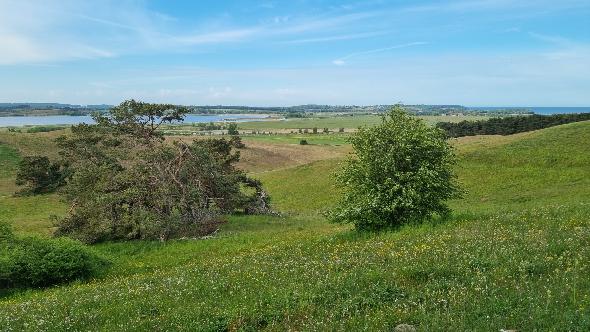Wir stehen um 5 Uhr auf, um den Tag zu nutzen und um vor dem angekündigten Sturm unser Ziel Samsø zu erreichen. Wir segeln die 62 sm in 10 Stunden fast bis vor den Hafen unter Spi. Das Anlegemanöver wird schwierig, da Wind und Welle aus Osten direkt im Hafen stehen und wenig Raum für Manöver ist. Wir sind froh, dass es ohne Schäden glückt, und vertäuen das Schiff ordentlich vor dem Wind, der uns nun drei Hafentage verordnet. Wie erwartet dreht er von Ost auf Nordwest und wir liegen hier sicher. Zeit für Landausflüge: 16°, Regenschauer, Wind > 50 kn aus NW klingen nicht gerade nach Sommer. Uns kann das nicht schockieren, denn wir sind das aus Irland, Schottland und Norwegen in den letzten zwei Jahren gewohnt. Wir nutzen den kostenlosen Busservice (der sollte bei uns zuhause auch endlich eingeführt werden) und unternehmen ausgiebige Wanderungen zum Norden der Insel.