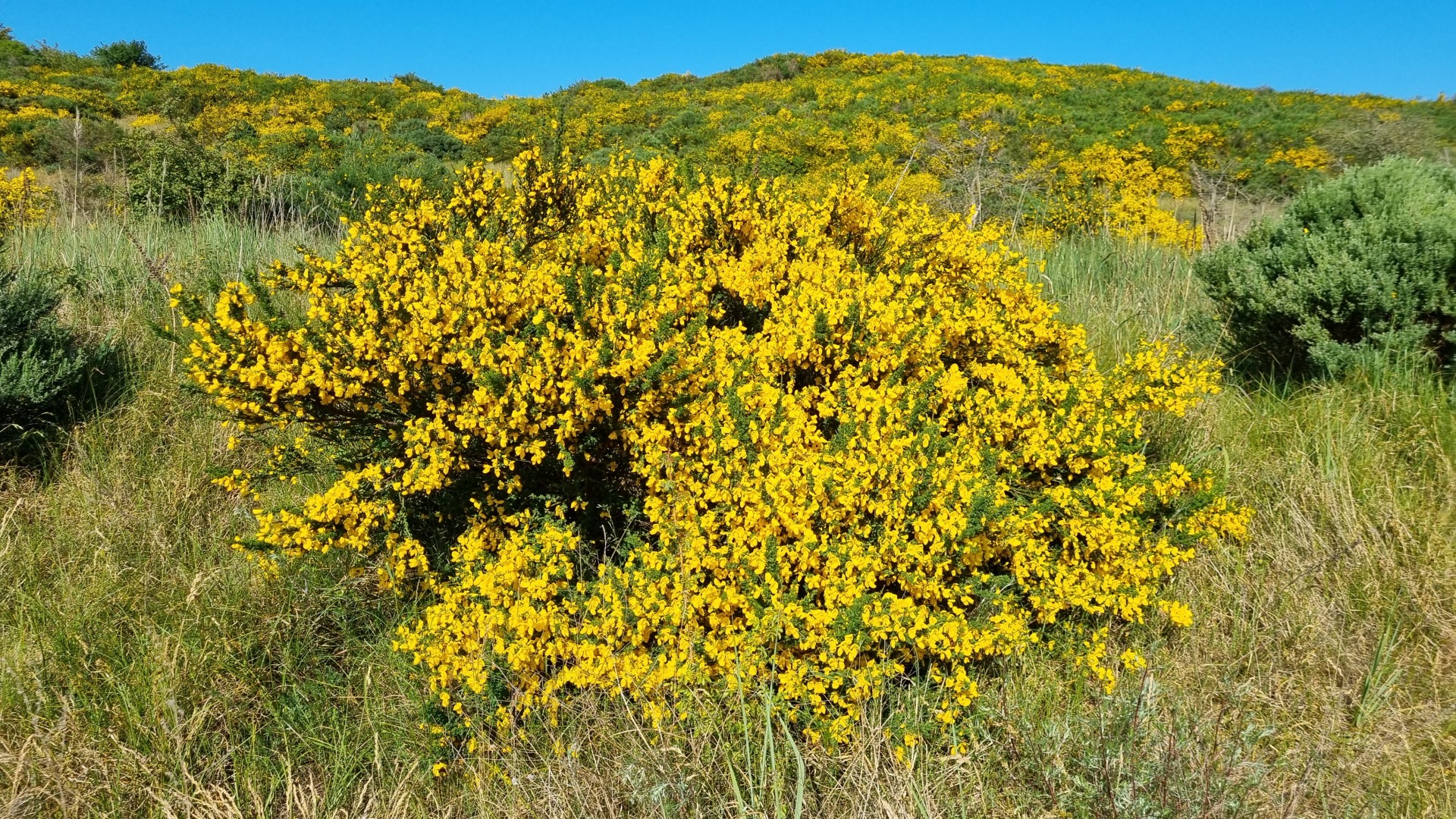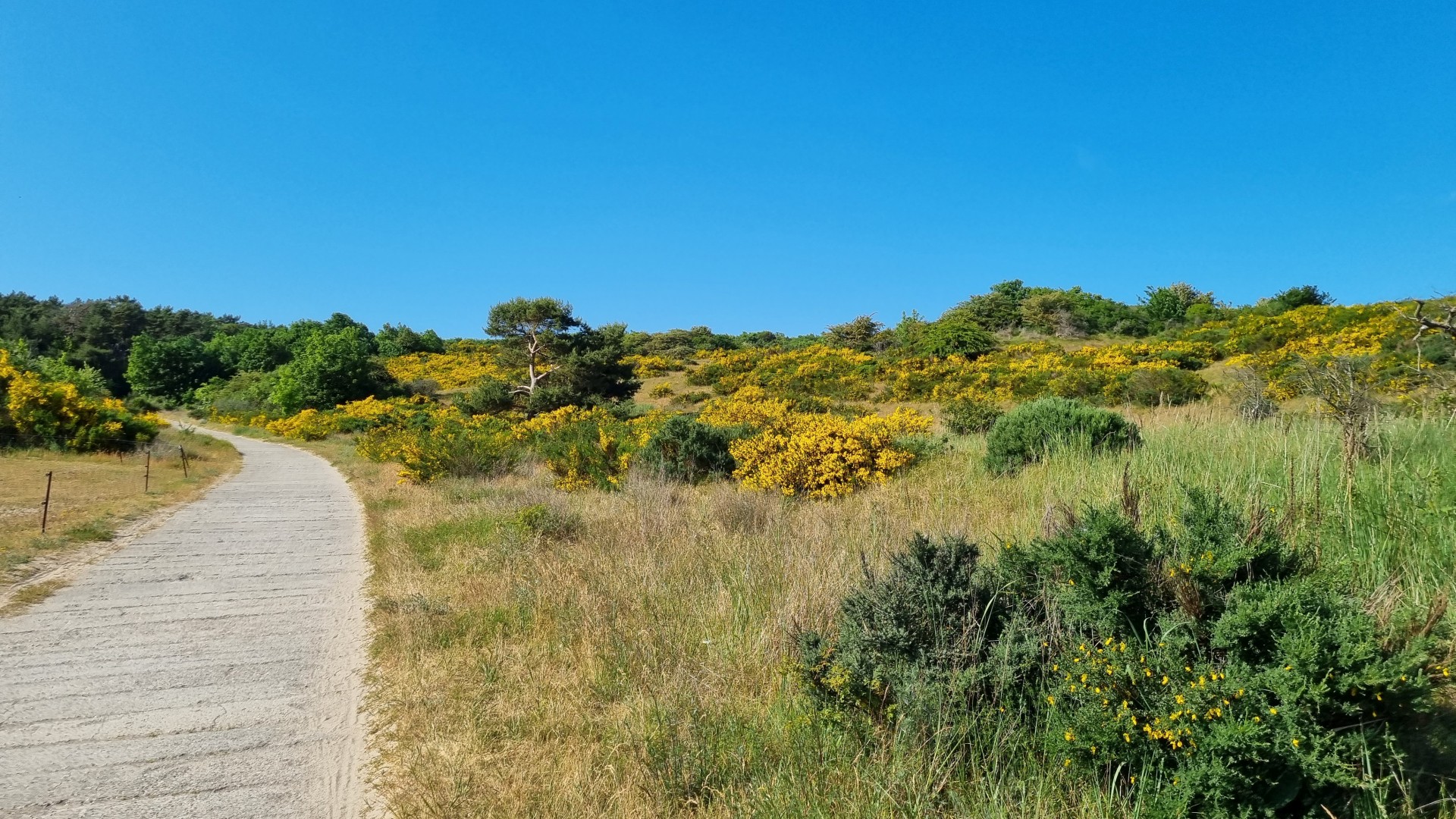 Auf dem Törn im Juni nach Hiddensee mit Christl und Harald blüht endlich der Ginster.