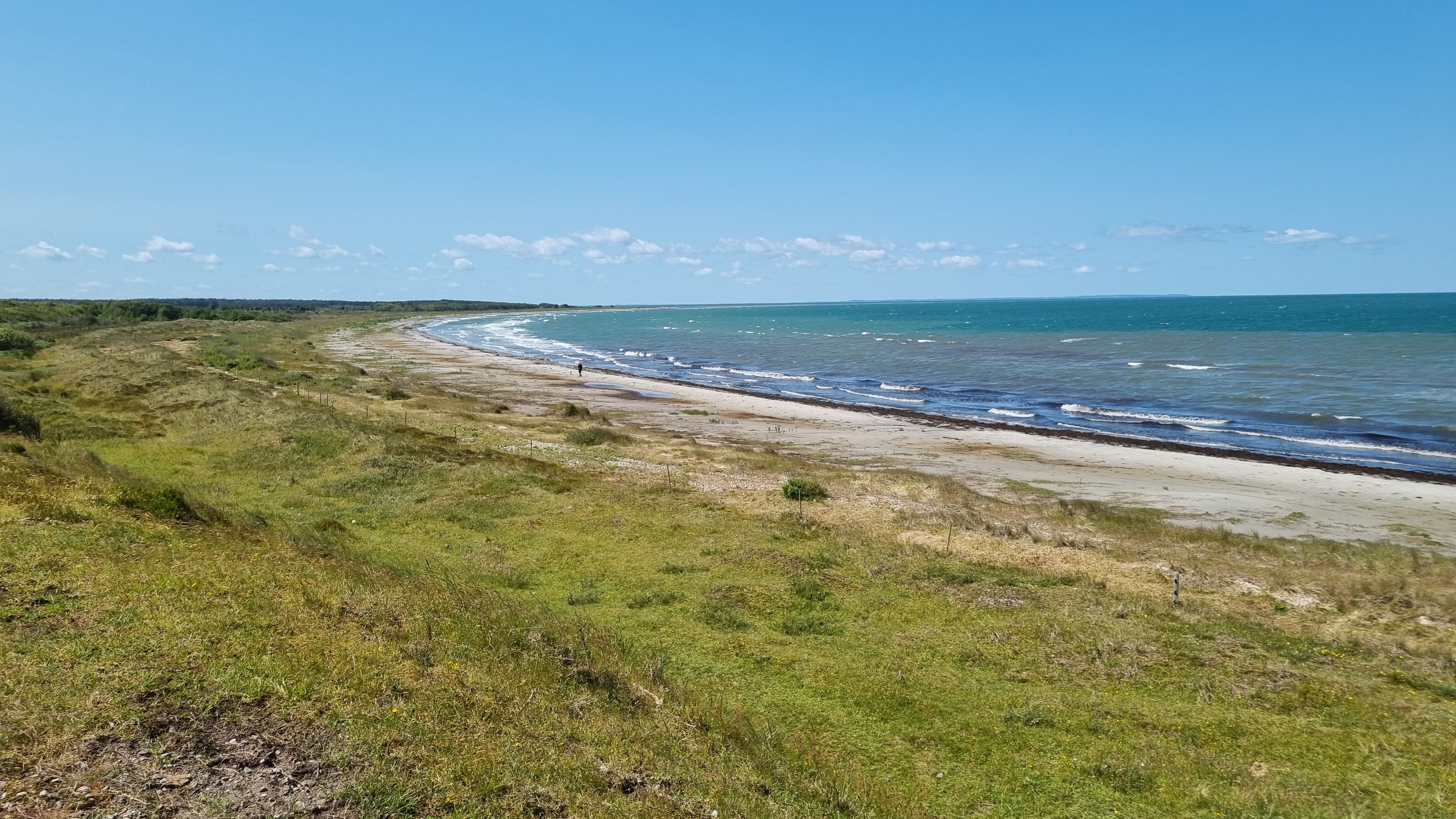 Wir wollten sowieso einen Tag auf Læsø bleiben, deshalb stört es uns auch nicht, dass der Wind am nächsten Tag aus NW kommt, also genau gegenan auf dem Weg nach Skagen. Heute scheint wunderbar die Sonne, als ob es nie Dauerregen gegeben hätte, und wir wandern die Nordküste entlang und dann nach Byrum, dem Hauptort der Insel, um dort den Ferientag im Café zu genießen und im „Brugsen“ einzukaufen. Zurück im Hafen lassen wir den Tag mit einem Gin Tonic und Weißwein ausklingen, bevor an Bord gekocht wird. Auch wenn Læsø mit 101 km² und 1719 Einwohnern wesentlich größer ist als Anholt mit 22 km² und 127 Einwohnern, gefällt es uns hier auch sehr gut.