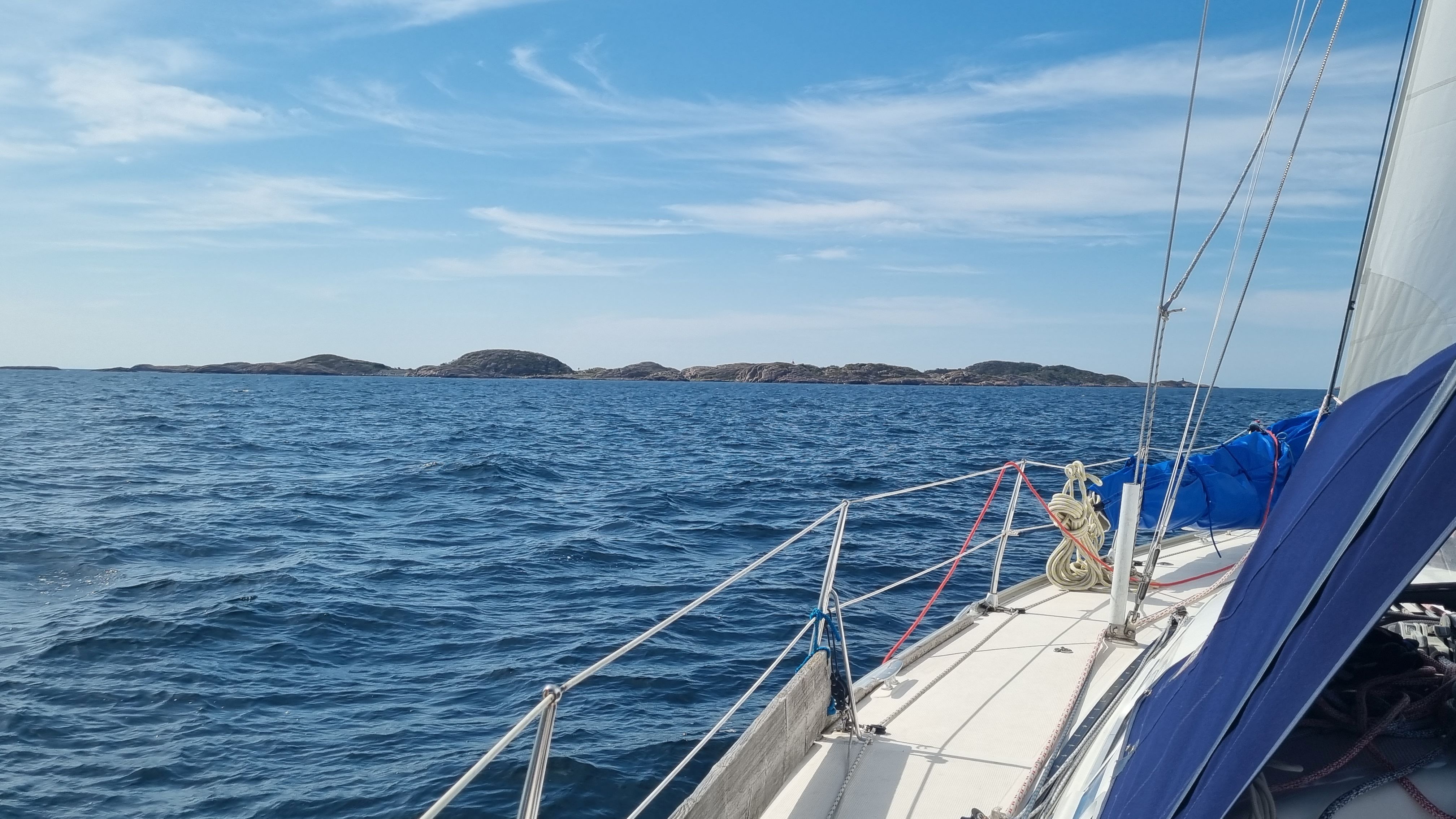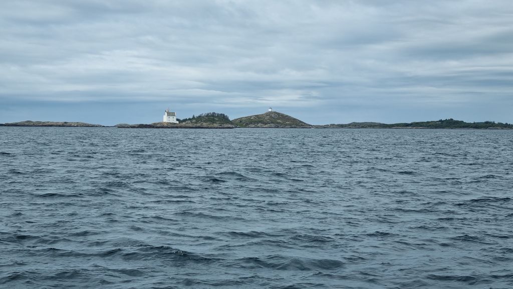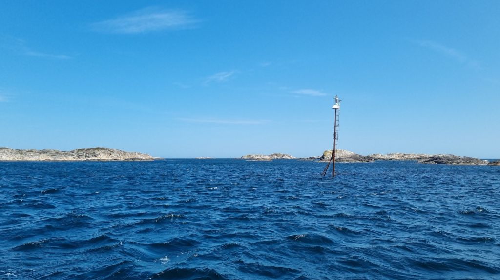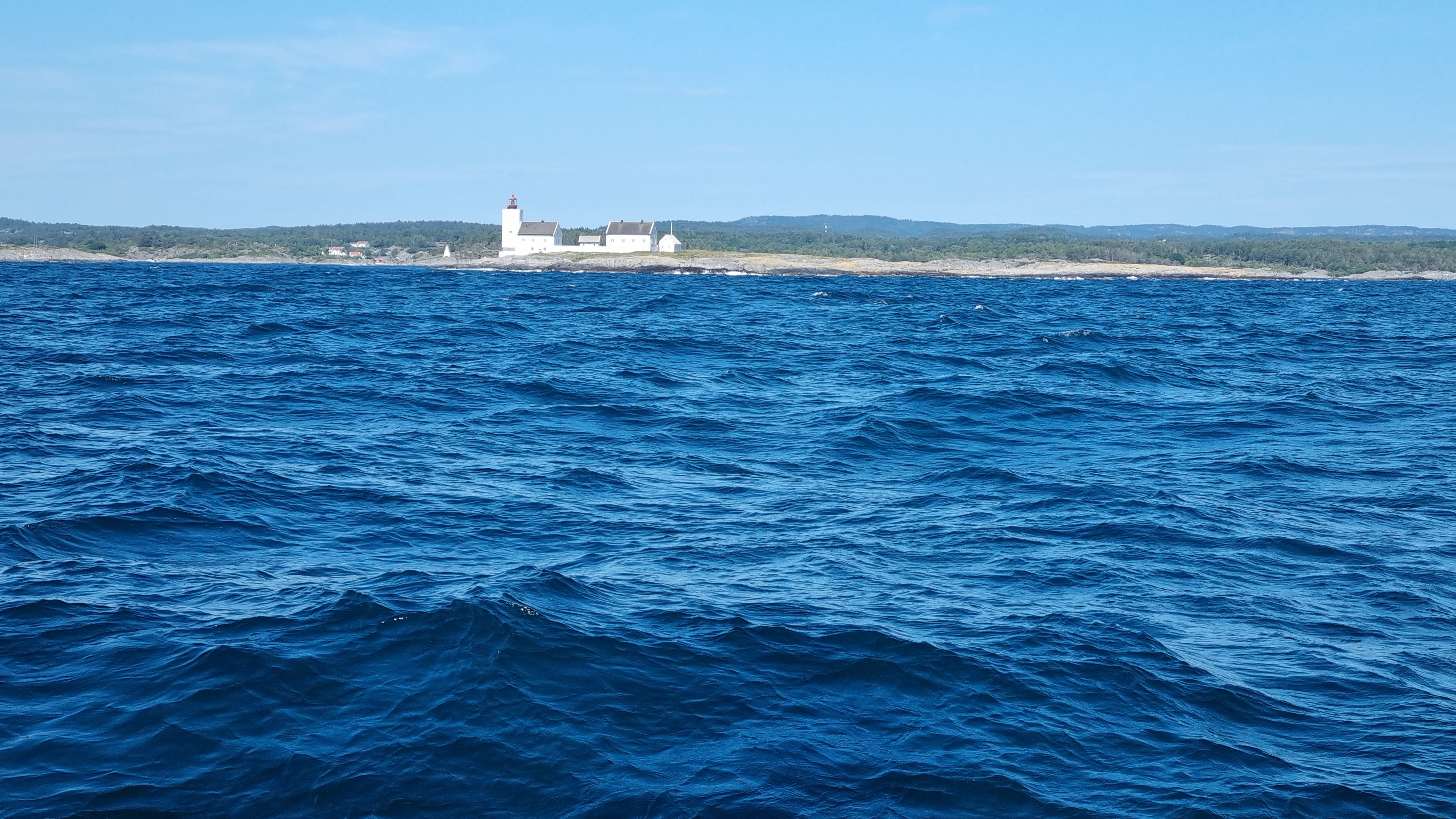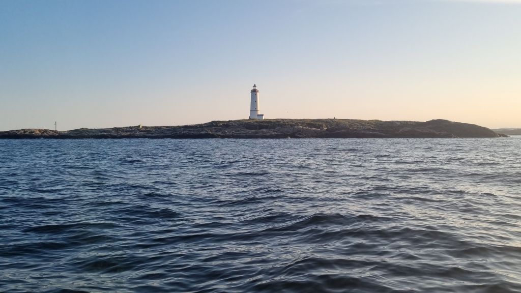 Da der Südostwind weiter stabil bleibt, entschließen wir uns gleich am frühen Morgen die Überfahrt nach Norwegen zu machen, wann hat man schon im Skagerrak solch ruhige Verhältnisse, die wollen wir nutzen. Wir legen um 5:50 Uhr ab, segeln hoch am Wind entlang der Küste und dem Flachgebiet bis zum Punkt, wo sich die beiden Meere treffen. An der Nordtonne setzen wir den Spi und passieren das Verkehrstrennungsgebiet ohne viel Verkehr. Leider schwächt sich der Wind zwischen 11 und 14 Uhr sehr ab, sodass wir unter 4 Knoten laufen. Dann kommt der Wind aber wieder und wir gleiten mit 6-7 kn über das ruhige Skagerrak. In den Abendstunden erschallt der Ruf „Land in Sicht“, aber es braucht noch eine Weile, denn der Wind flaut wieder ab und dafür haben wir eine unangenehme Welle, sodass die Segel schlagen. Die letzte Stunde fahren wir unter Maschine in den Fjord, der zur Stadt Arendal führt, und finden in den vorgelagerten Schären einen tollen Anleger auf Søndre Brattholmen, der zu einem Segelclub gehört. Wir werden nett empfangen, quatschen über die Weltpolitik und bekommen zwei Begrüßungsbiere spendiert. Zahlen müssen wir nichts, denn der Firmenchef, der mit seinen Mitarbeitenden hier feiert, hat bereits für die ganze Insel bezahlt. Wir kommen um 21:15 nach 15,5 Stunden und 80 sm an, was trotz flauem Wind einen Durchschnitt von 5,1 kn bedeutet, fast alles unter Spi gesegelt.