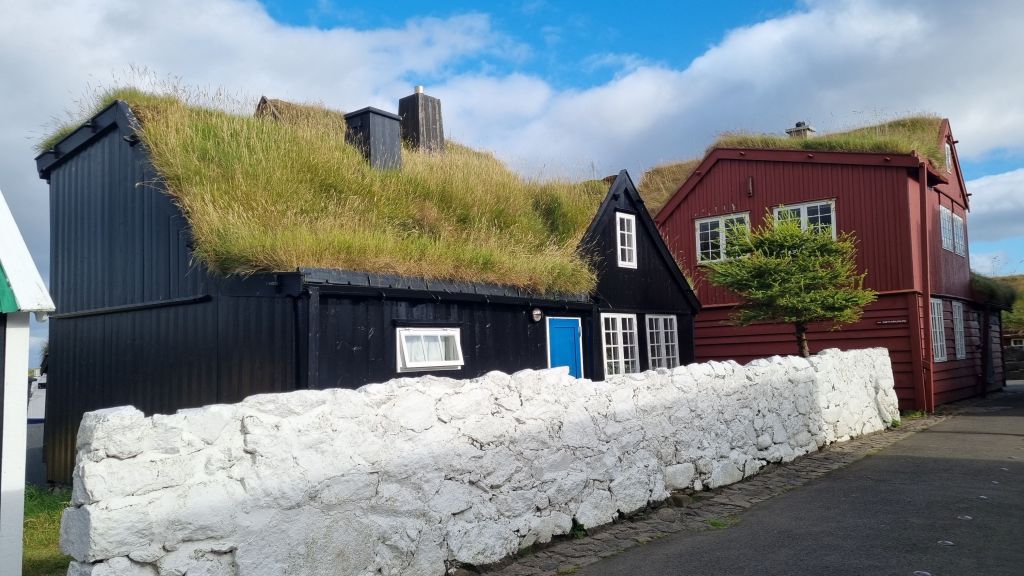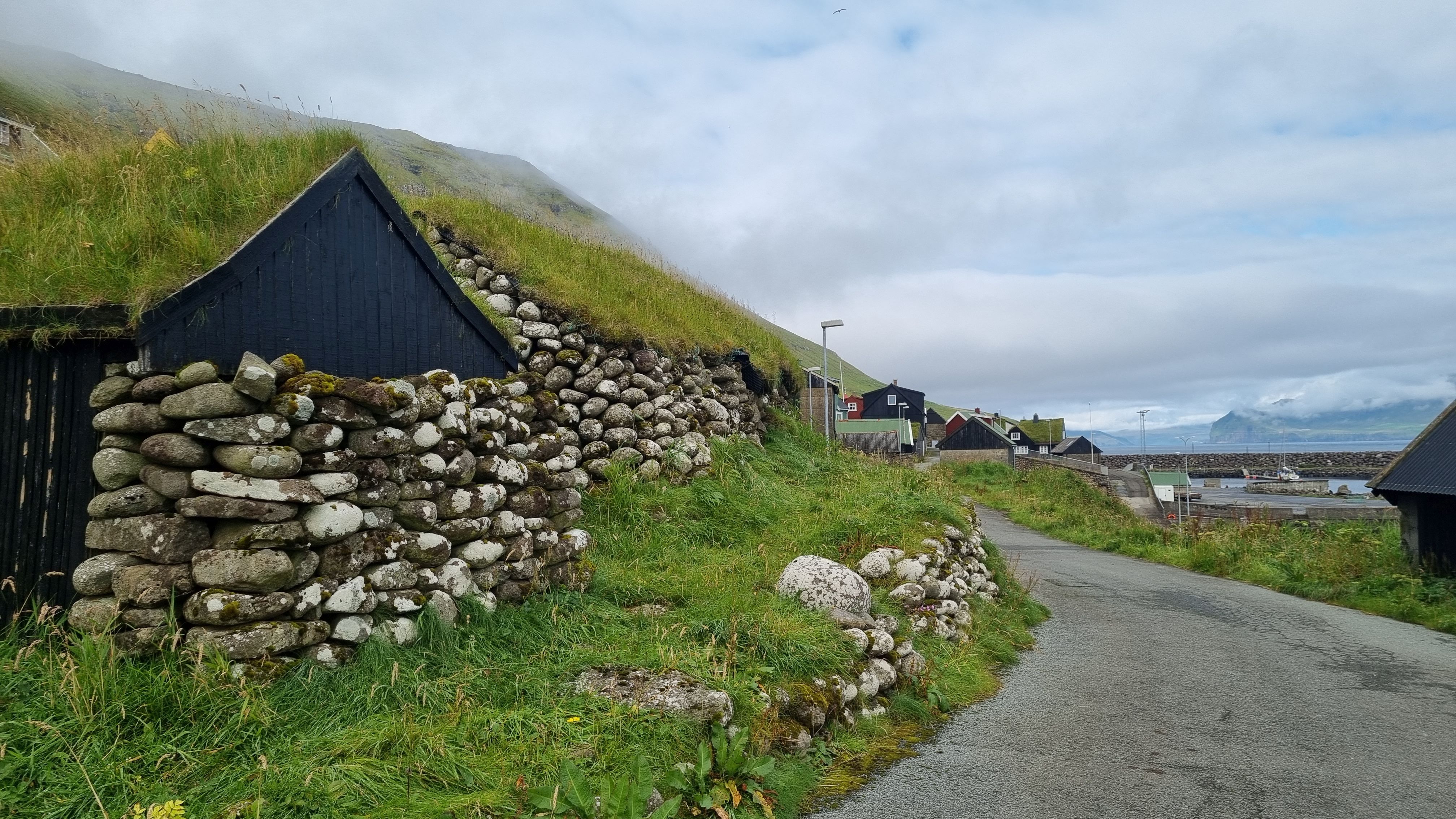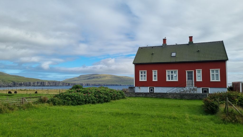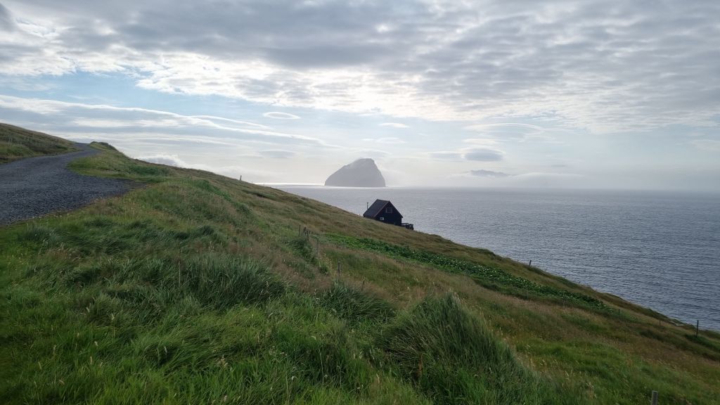 Am nächsten Tag fahren wir wieder mit der Tide Richtung Tórshamn. Es ist schön, wieder hier zu sein und einige Tage dort zu verbringen, Kathrin kennt es ja noch nicht. Wir fahren an einem Tag mit der Fähre hinüber zur vorgelagerten Insel Nólsoy, um eine ausgiebige Wanderung zum Leuchtturm im Süden der Insel zu unternehmen.  Im Anschluss genießen wir im Museum Cappuccino und Kuchen und ruhen uns mal in der Sonne aus, diese Gelegenheit haben wir ja hier im Norden sehr selten.