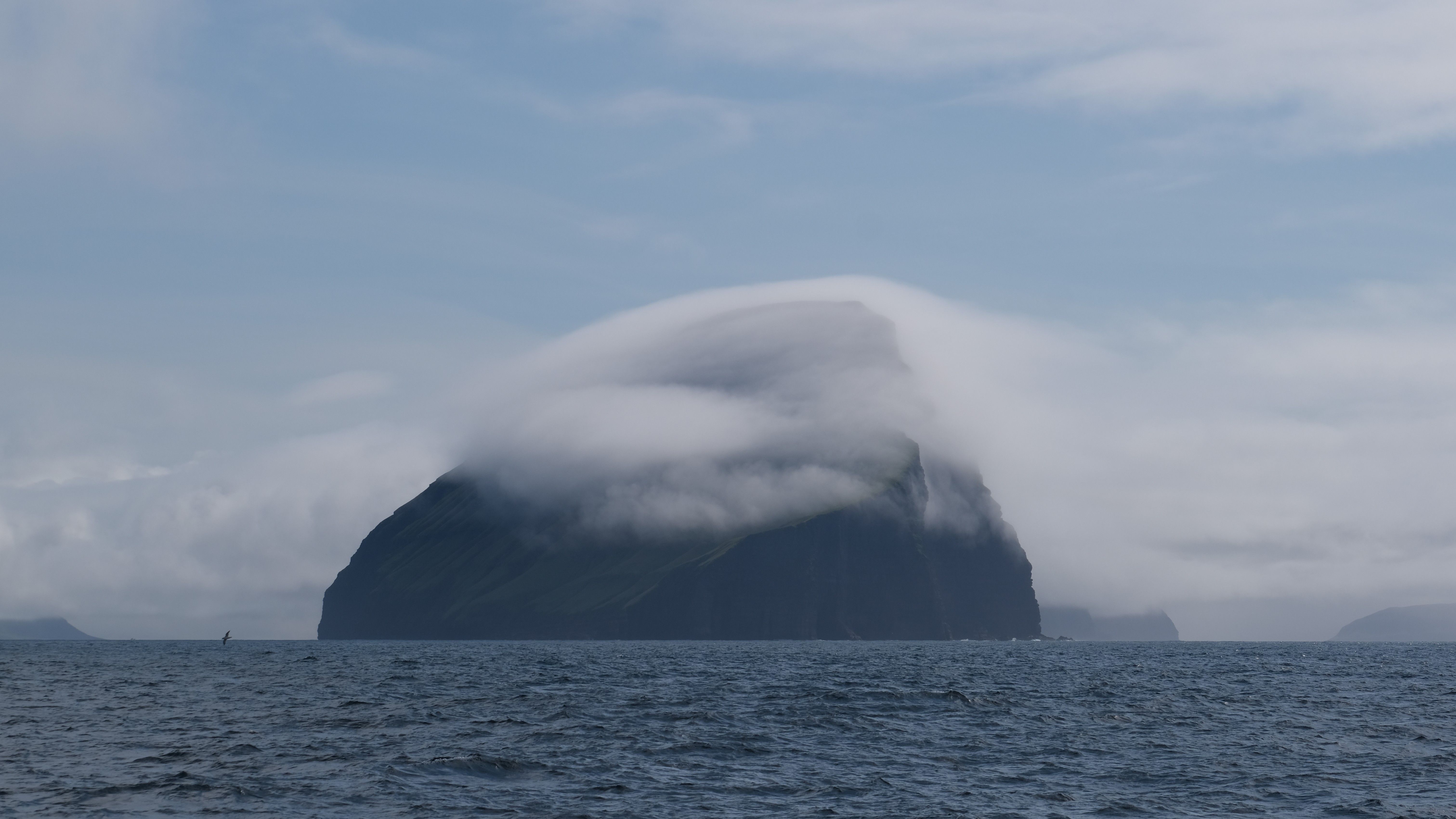 Wir legen ab, nun zu dritt, und steuern den kleinen Hafen von Hestur an, der auf der gleichnamigen Insel liegt. Wir treffen nette Leute von hier, die uns erzählen, dass in dem Ort früher 120 Leute lebten. Heute sind es noch 5 Personen, die hier auf Dauer wohnen . Die Berge liegen in den Wolken, trotzdem unternehmen wir eine Wanderung hinauf auf die Hochebene. Es hat seinen Reiz, durch den Nebel zu stapfen. Als wir bei der Steilküste ankommen und uns der Wind und Regen ins Gesicht wehen, entscheiden wir uns lieber umzukehren.